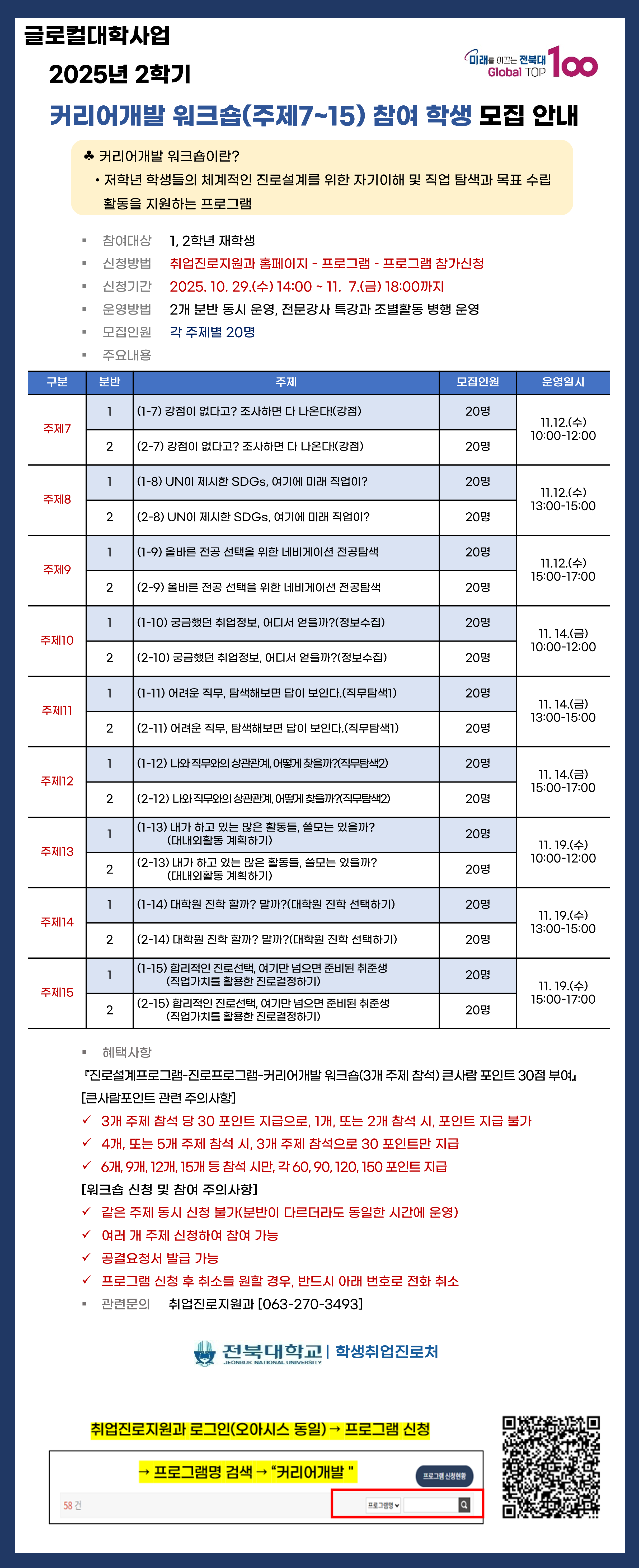 취업진로지원과 홈페이지(https://career.jbnu.ac.kr/sites/career/index.do) 로그인(로그인 정보는 오아시스와 동일)