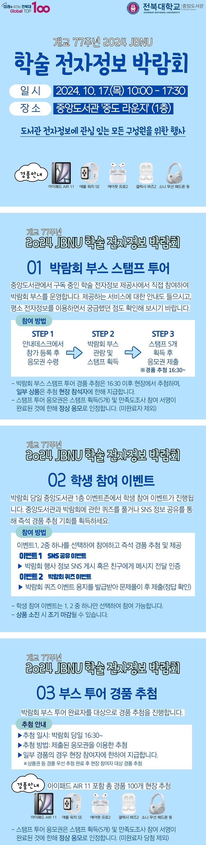- 경품 안내: 아이패드 에어 11, 애플 워치 SE, 에어팟 프로2 등 100여개 경품 구성