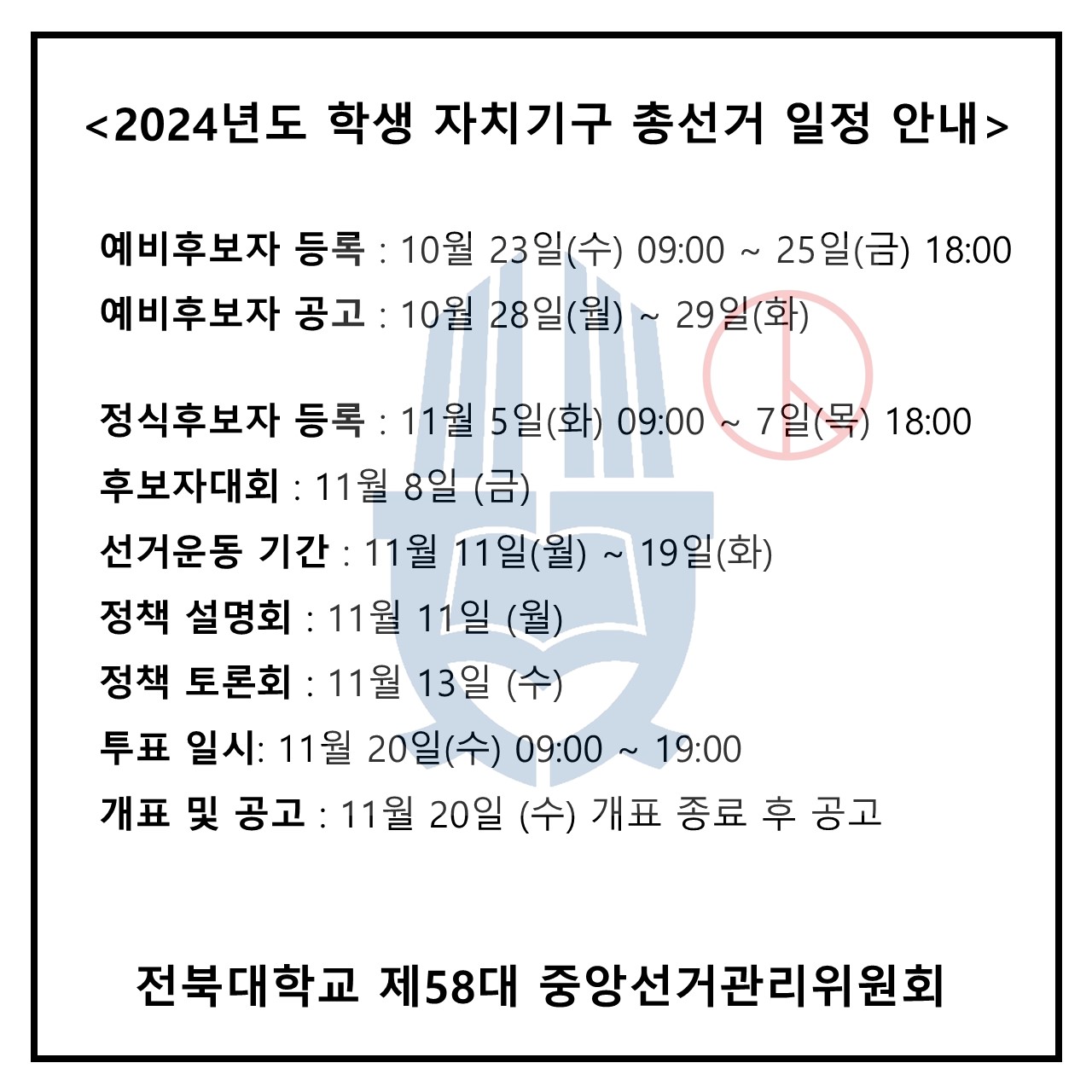 2024년도 학생자치기구 선거일정 및 중앙선거관리위원회 안내입니다.
