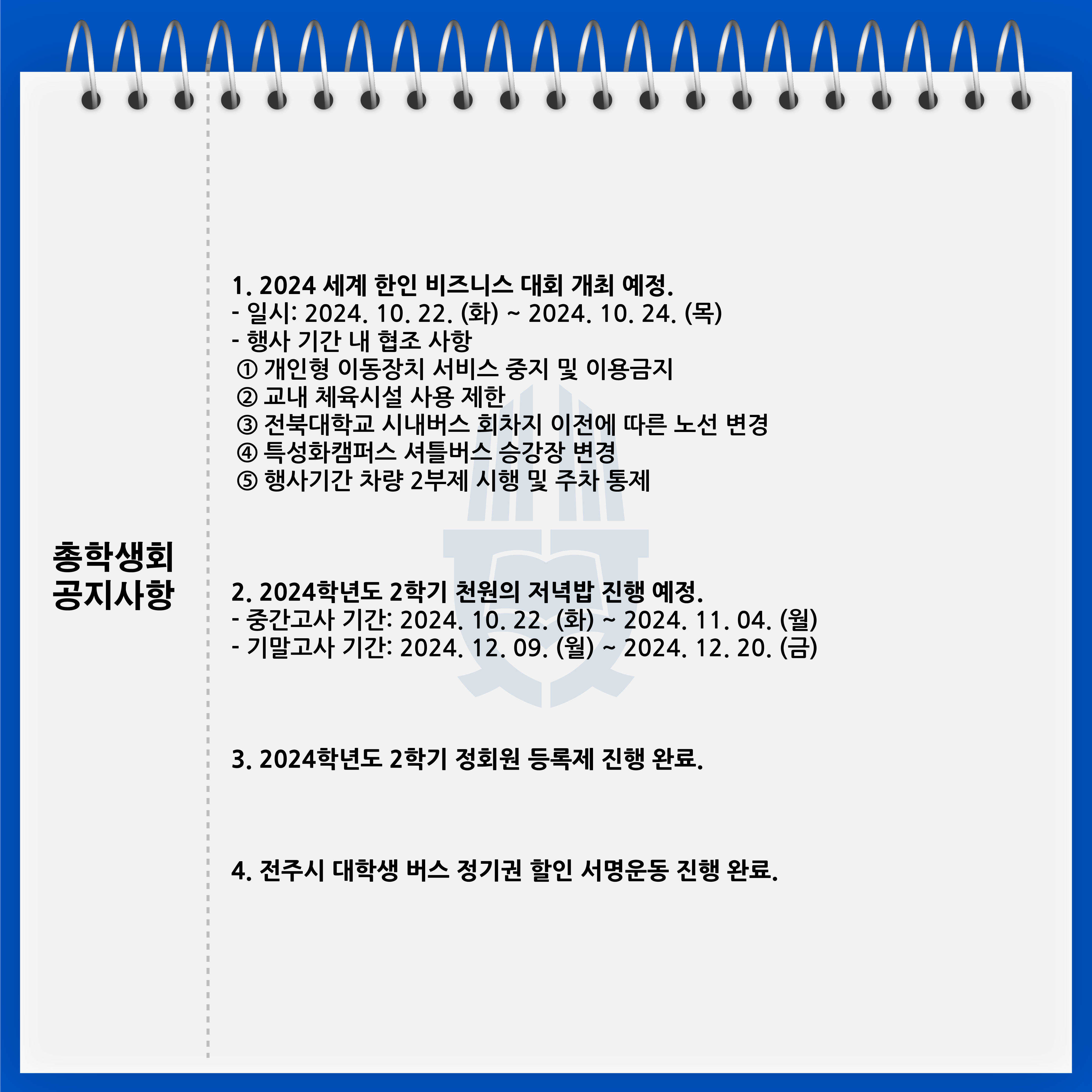 안녕하세요! 전북대학교 제56대 대로 총학생회입니다.
