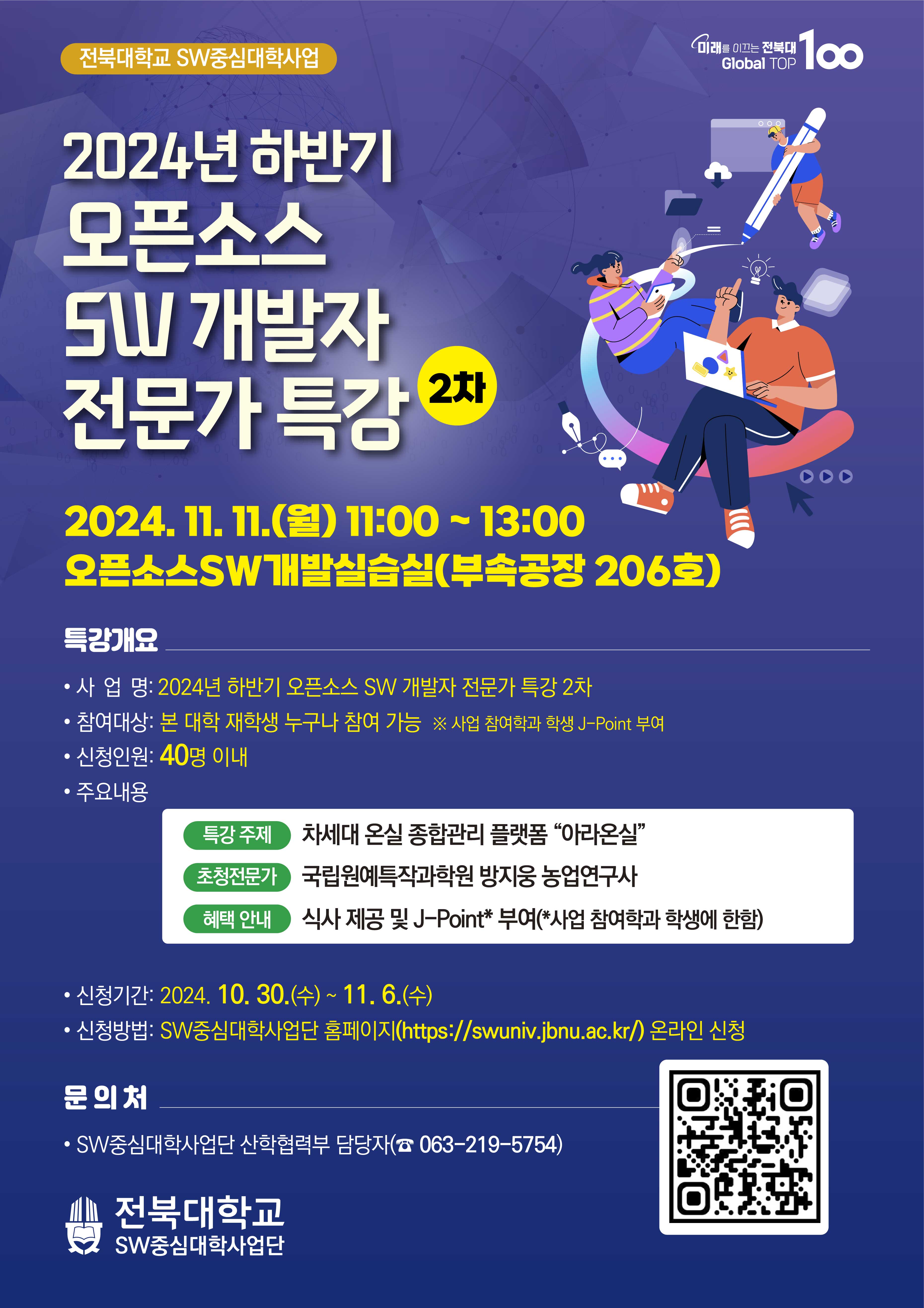 신청방법: SW중심대학사업단 홈페이지(https://swuniv.jbnu.ac.kr/) 온라인 신청