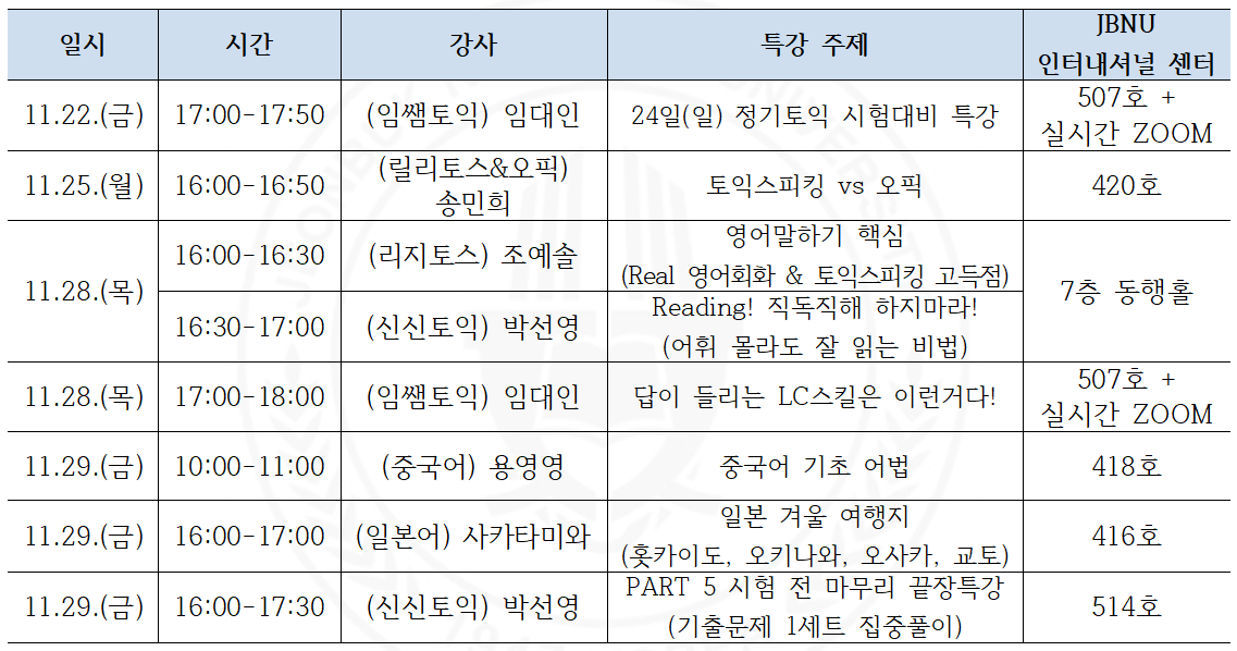 [언어교육부] 11월 외국어 강좌 특강 안내
