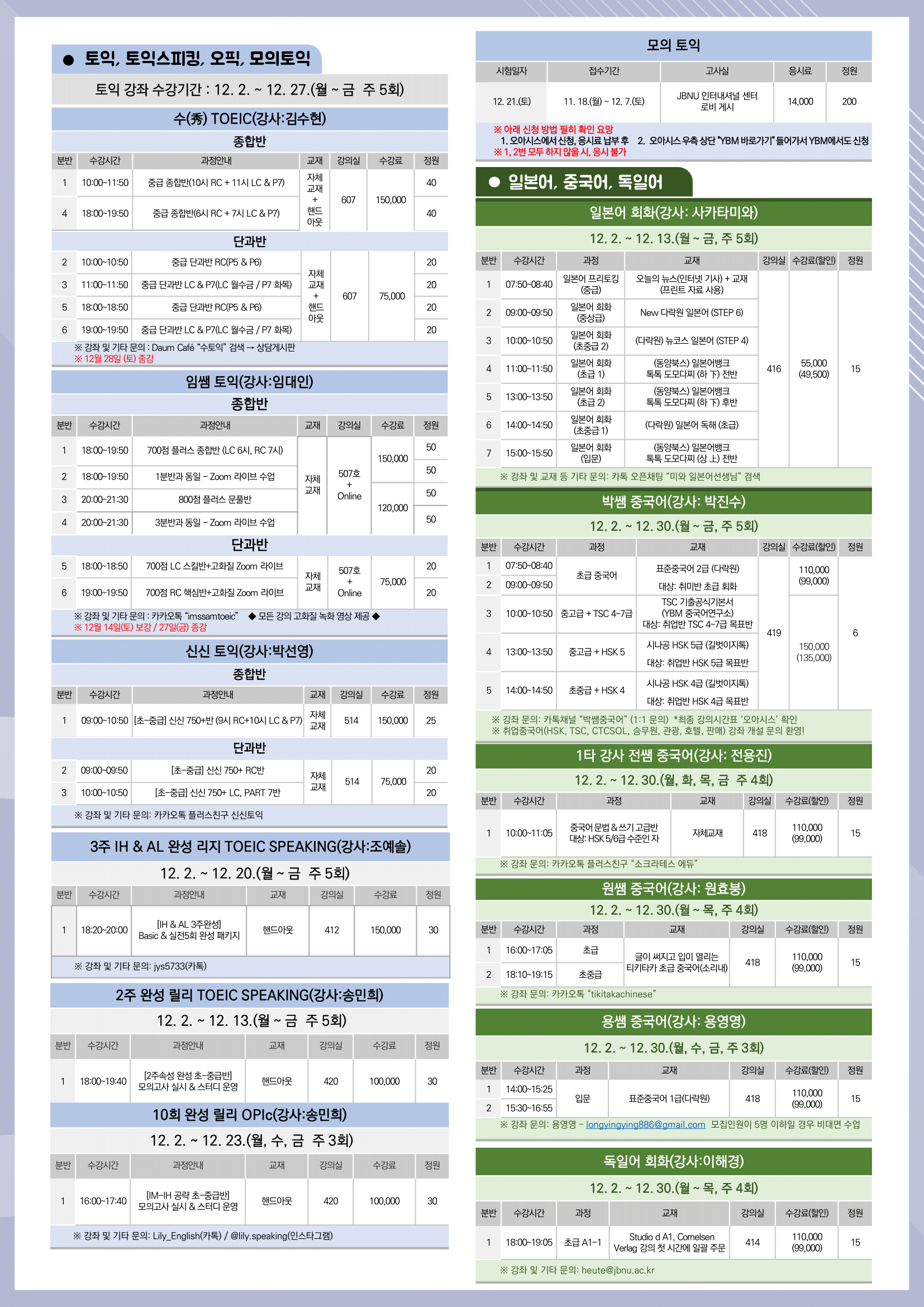 [언어교육부] 12월 외국어 강좌 안내(모의토익 신청방법 붙임 참조)