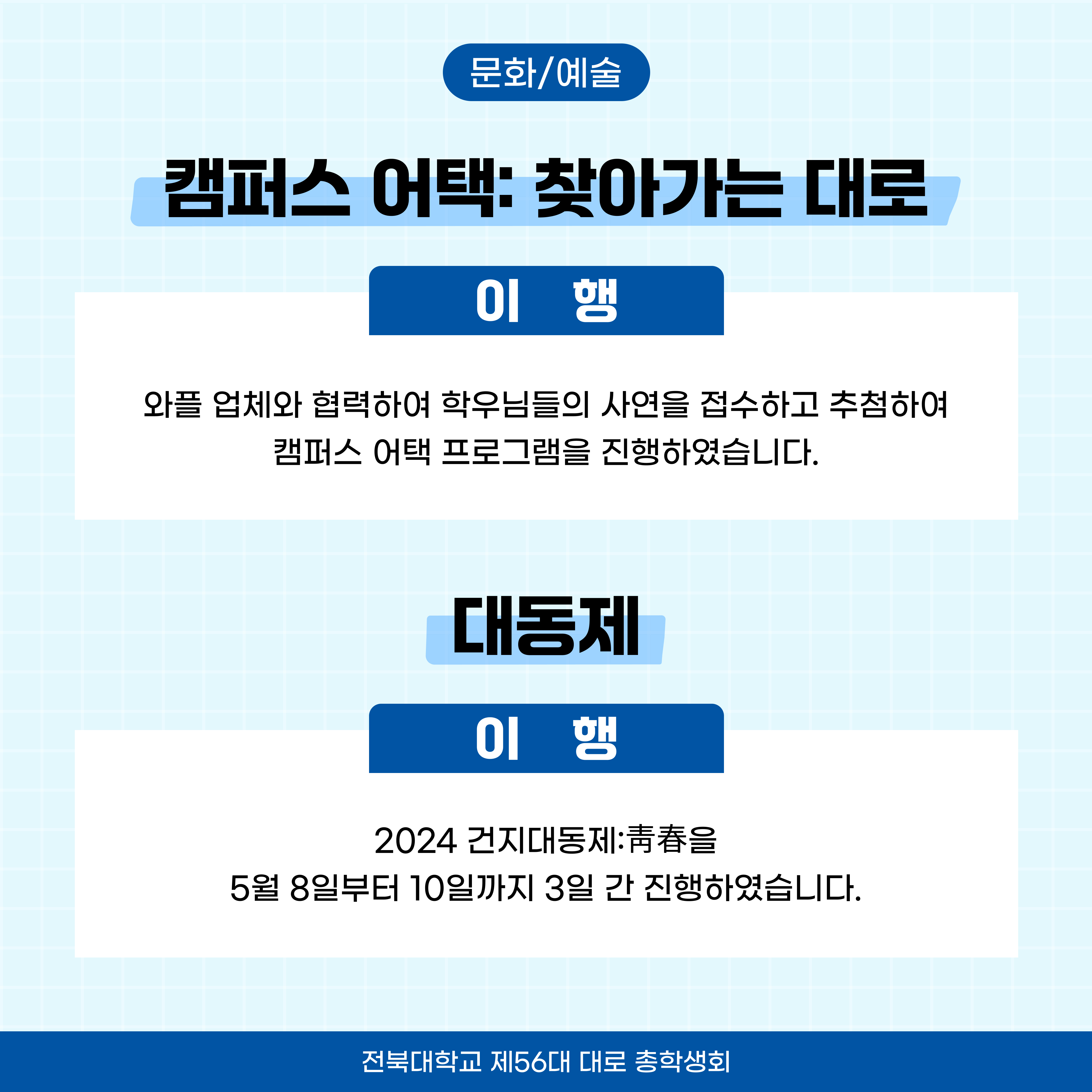 [대로 총학생회 공약 이행률 보고-문화/예술]