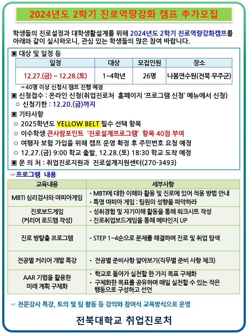 - 프로그램 신청 : https://career.jbnu.ac.kr/sites/career/index.do