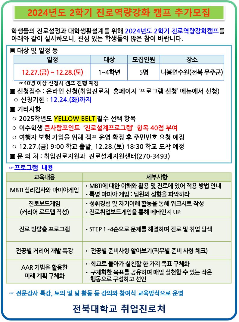 - 프로그램 신청 : https://career.jbnu.ac.kr/sites/career/index.do