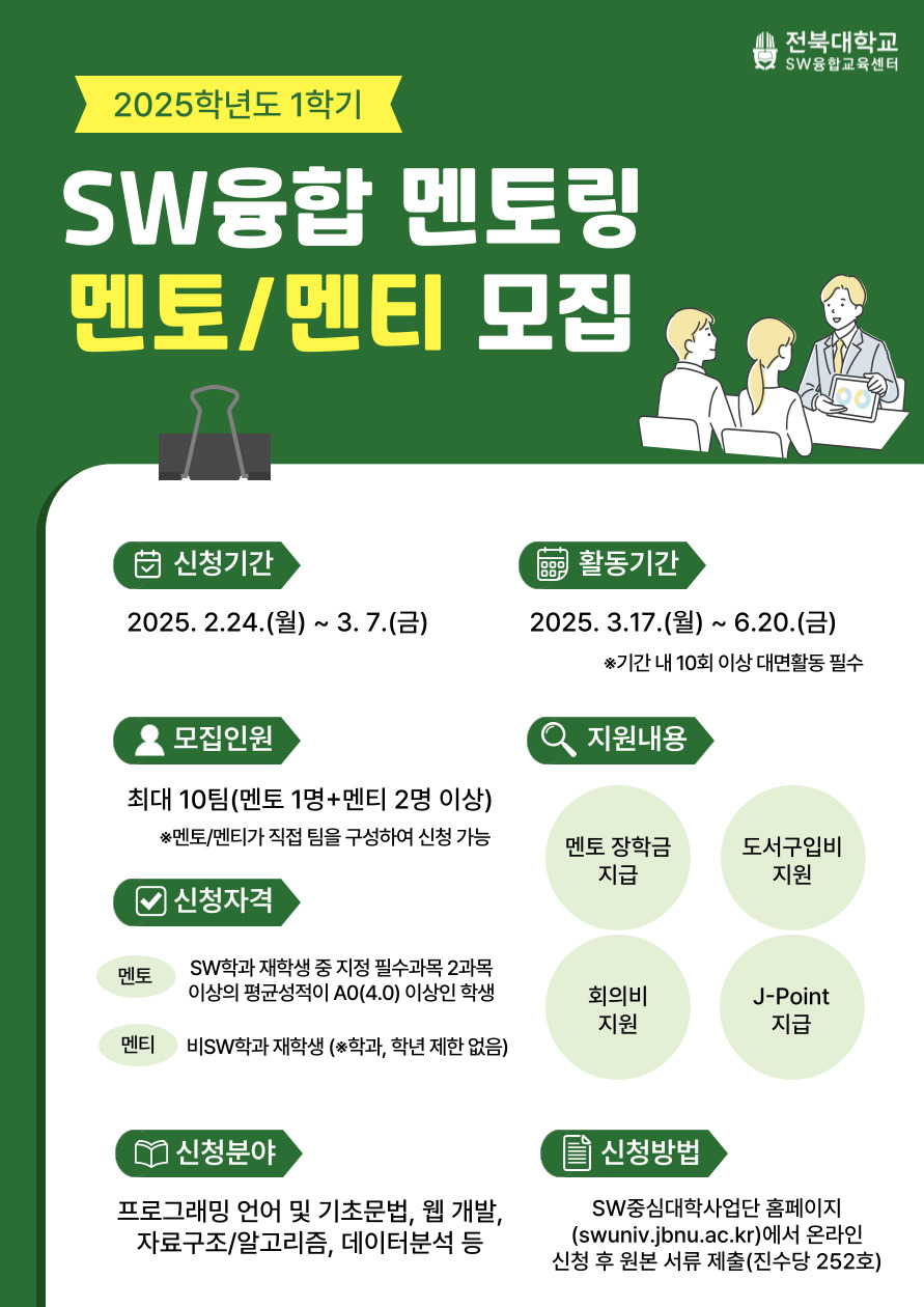 [2025학년도 1학기 SW융합 멘토링 프로그램 멘토/멘티 모집 안내]
