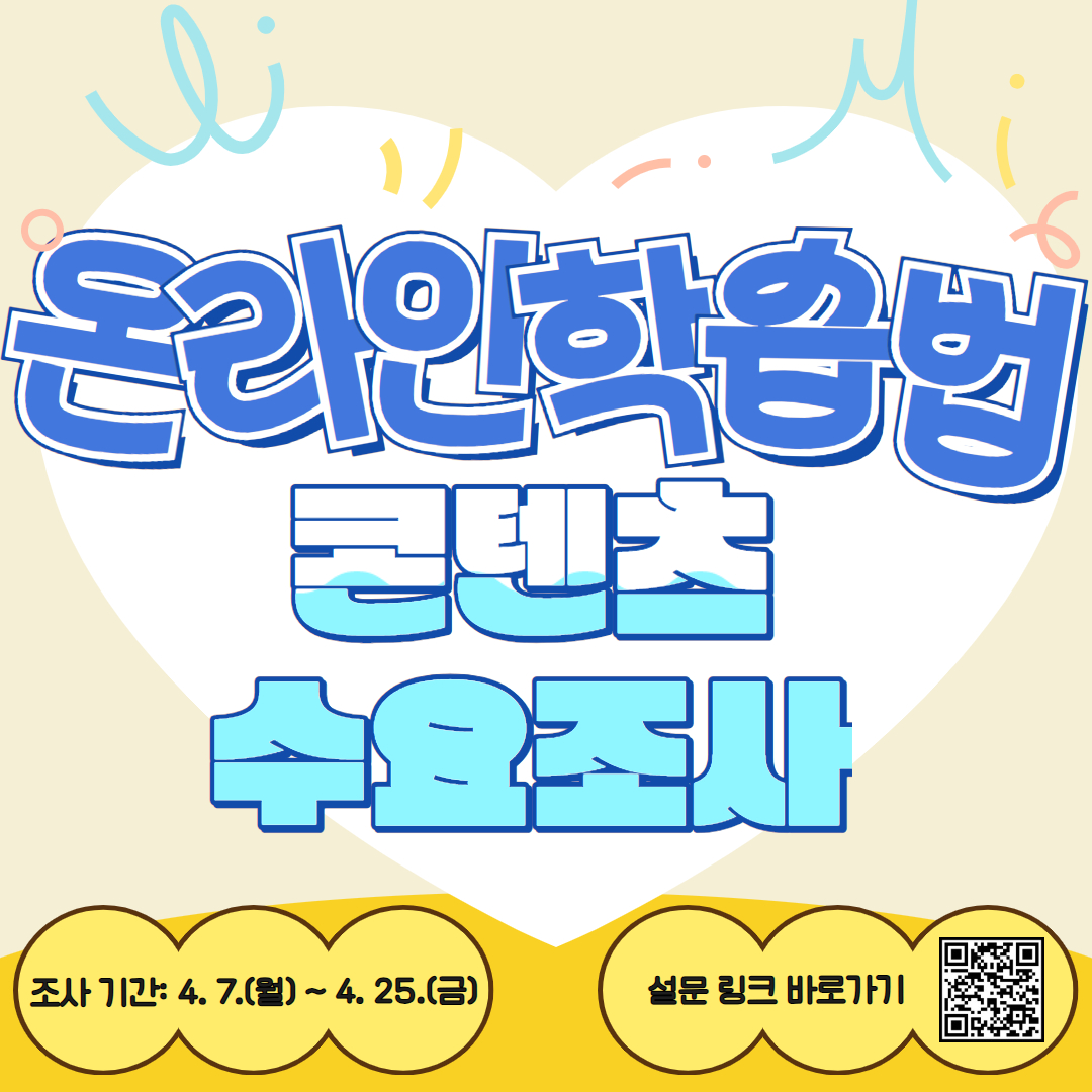 이에 학생 여러분들의 다양한 의견을 수렴하여 2025학년도 온라인 학습법 특강을 운영하고자 하오니 설문에 많은 참여 부탁드립니다. 감사합니다.