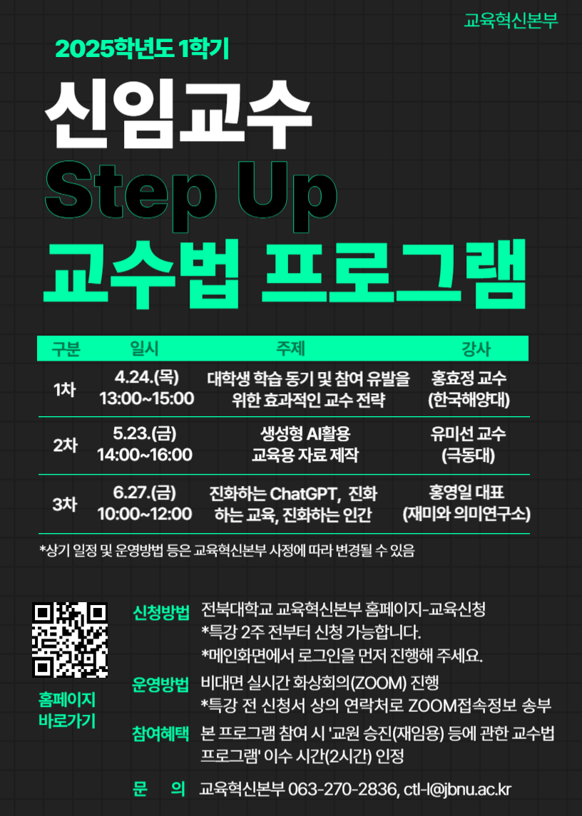 [교육혁신본부] 2025학년도 1학기 신임교수 Step Up 교수법 프로그램 운영 안내