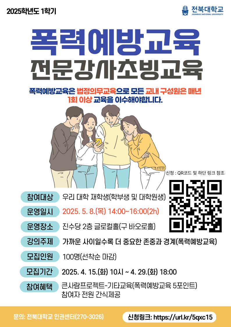 2025년 폭력예방교육 전문강사 초빙교육을 실시하오니