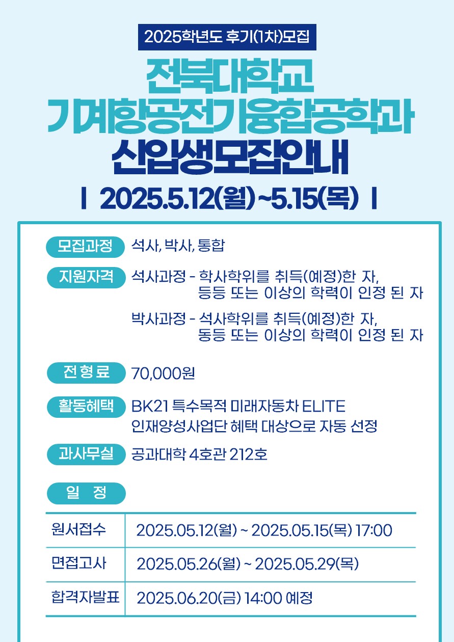 ☞ 모집요강 바로가기 ☞ https://enter.jbnu.ac.kr/submenu.do?menuurl=epgZeJfYqWIrjZTZiLvN%2bQ%3d%3d&