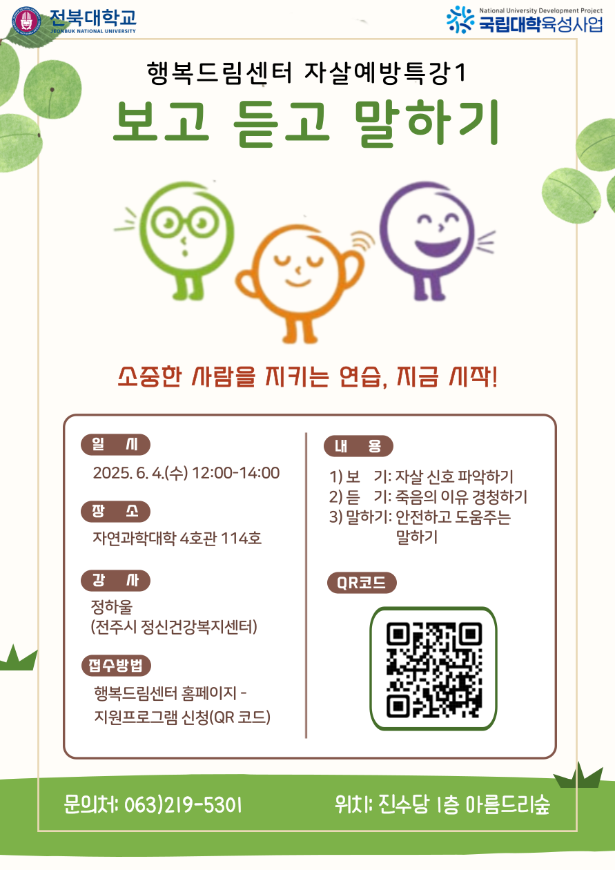 [행복드림] 자살예방특강1 - "보고 듣고 말하기" 프로그램 안내