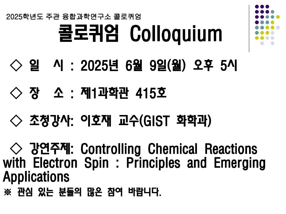 2025학년도 과학교육학부 콜로퀴엄(융합과학연구소)