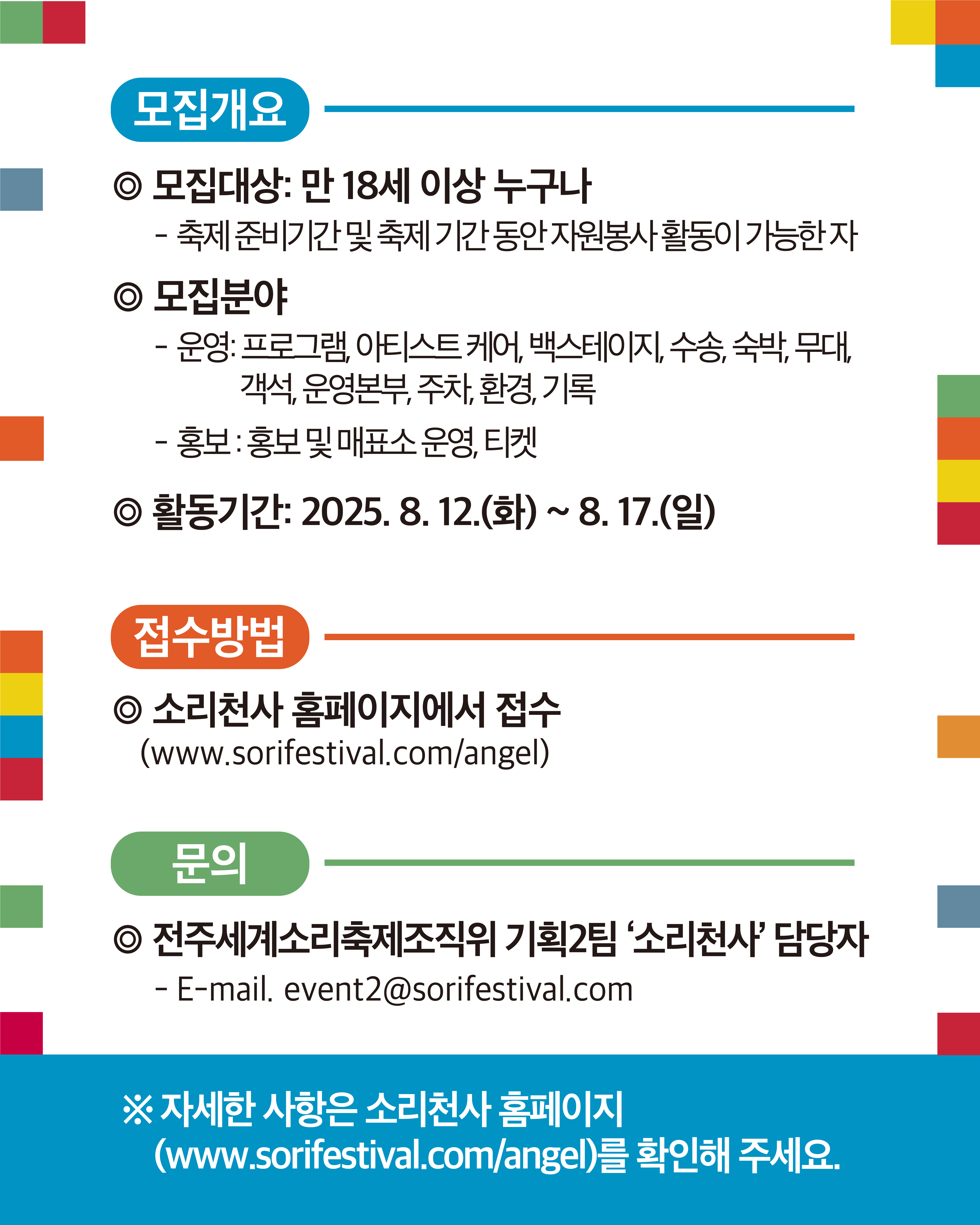 2025전주세계소리제 자원활동가 〈소리천사〉 를 모집합니다.