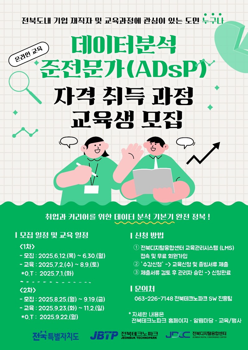 데이터분석 준전문가(ADsP) 자격 취득 과정 온라인 교육생 모집!