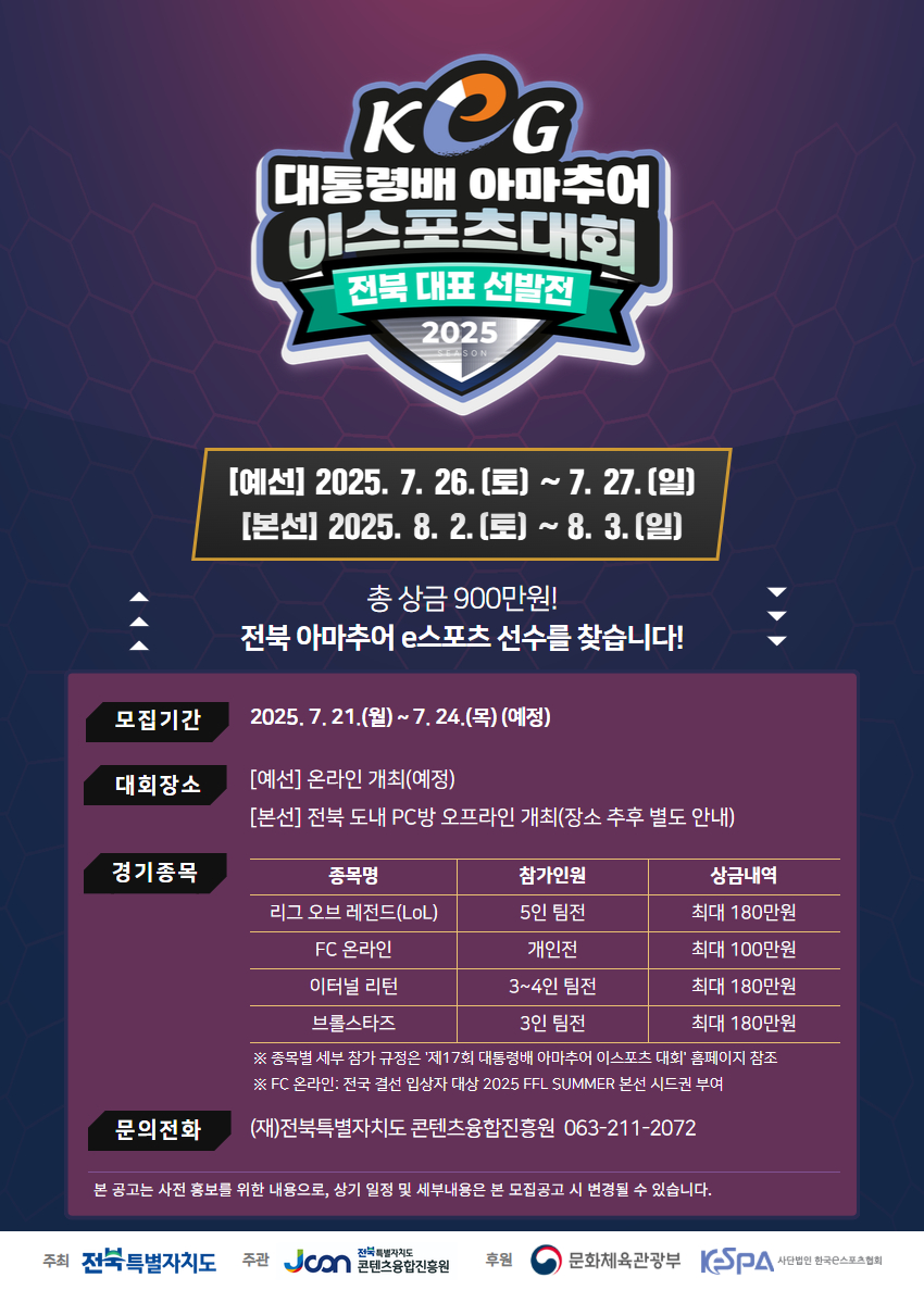 제17회 KeG 대통령배 아마추어 이스포츠대회 전북대표단 선발전 참가자 모집