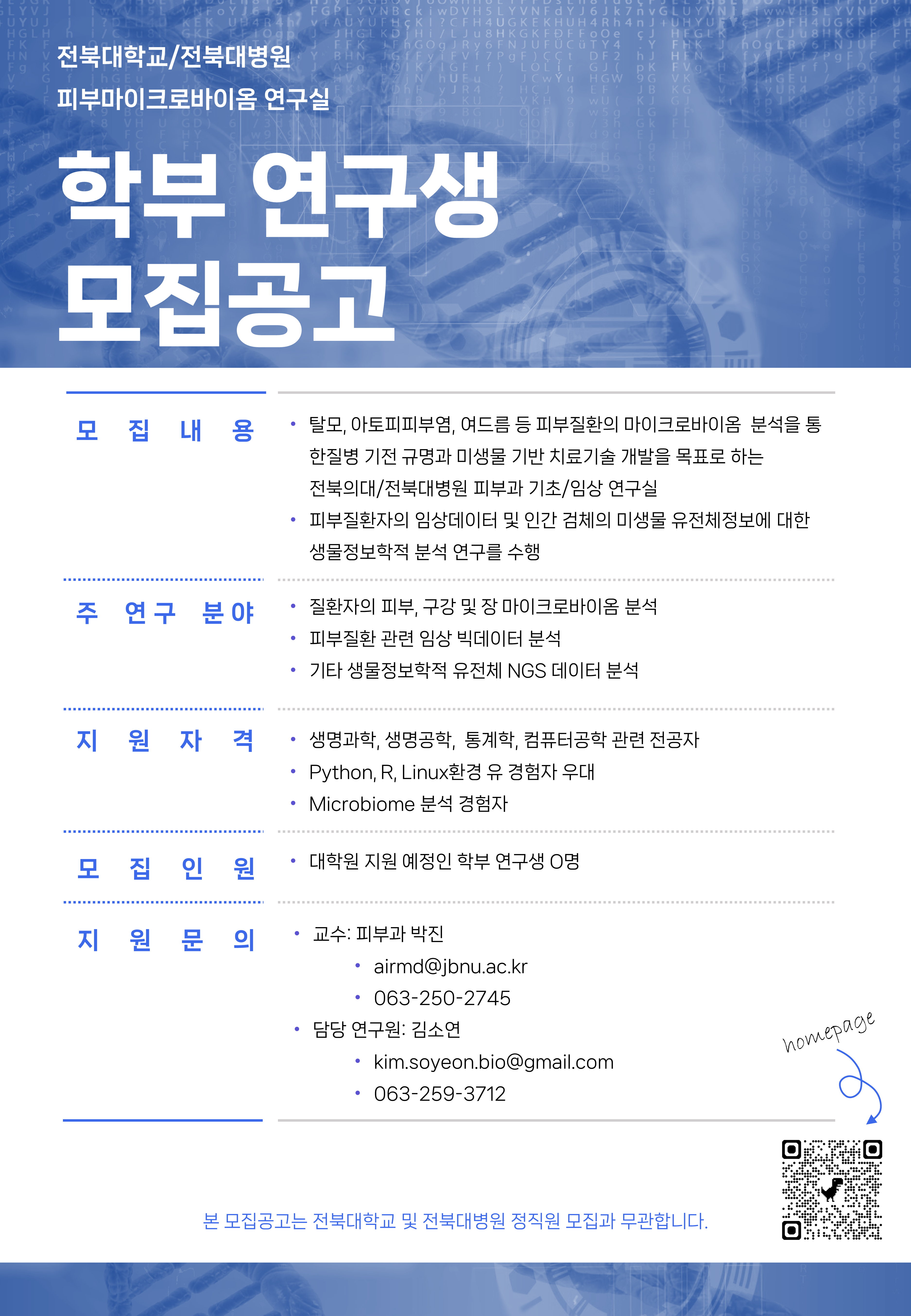 - ํํ์ด์ง : https://sites.google.com/view/skinmicrobiome-lab/home