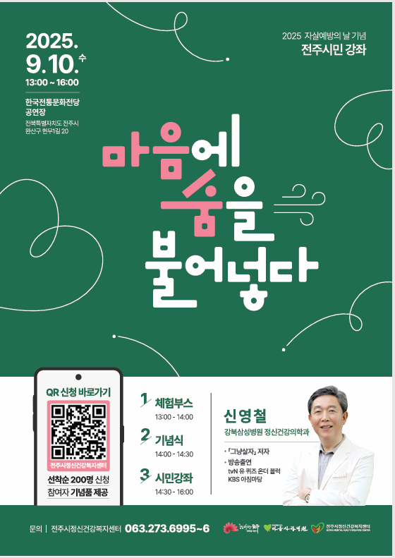 9월 10일(수) 한국전통문화전당에서 진행하는 자살예방의 날 행사에 참여하실 분 200명을 모집중입니다.