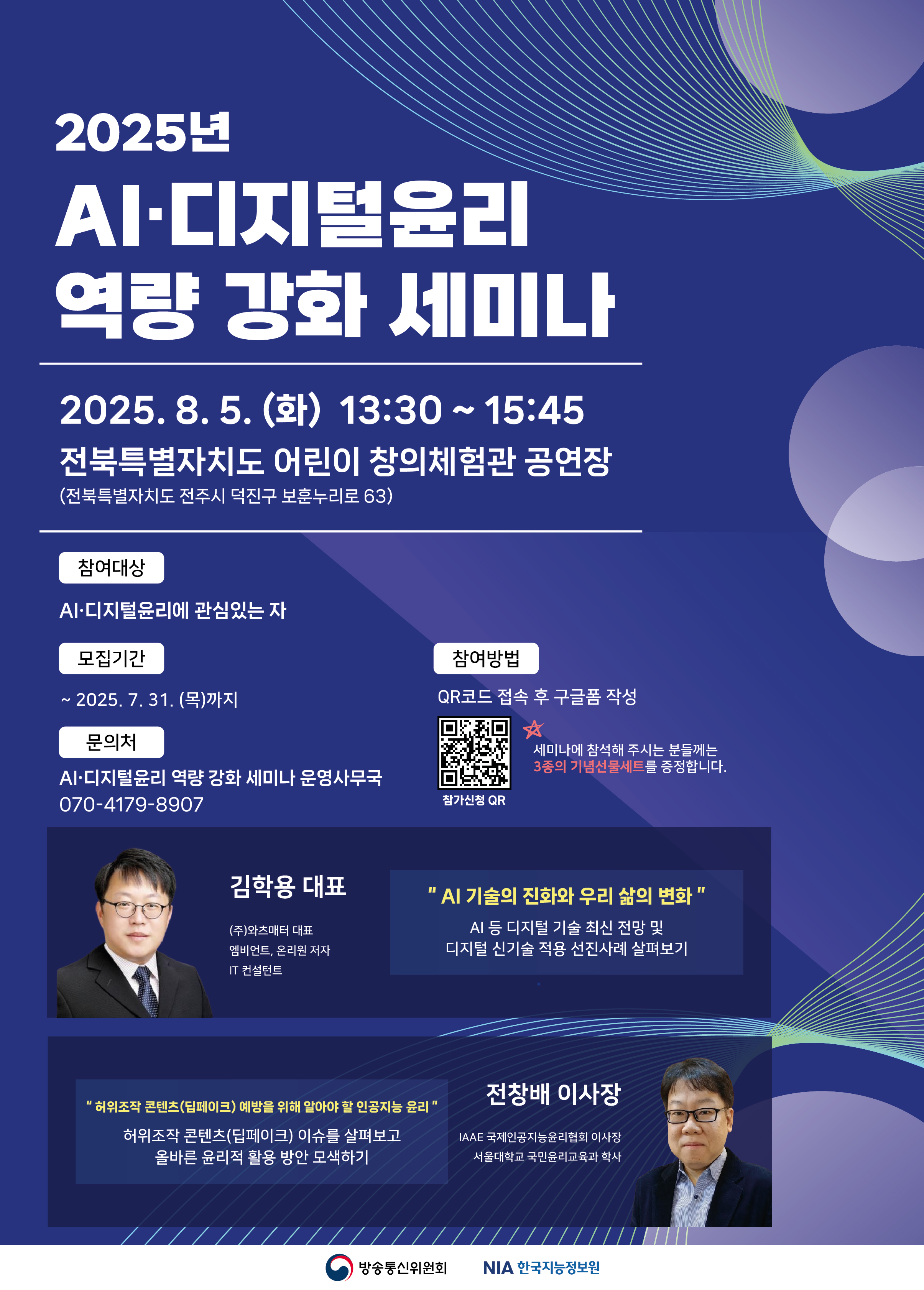 (전북특별자치도 전주시 덕진구 보훈누리로 63)대상: AI·디지털윤리에 관심 있는 누구나