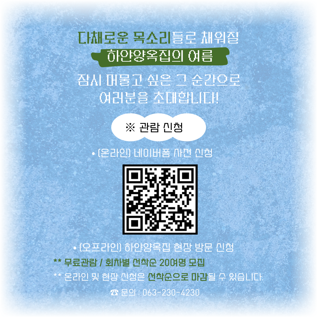 ☎ 문의 : 063-230-4230 (하얀양옥집 사무실)