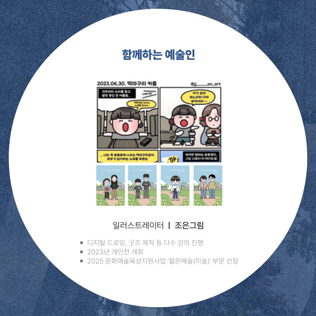 우리 지역에서 활동 중인 일러스트레이터 조은그림(@jj_____an_art) 작가님과 함께합니다.