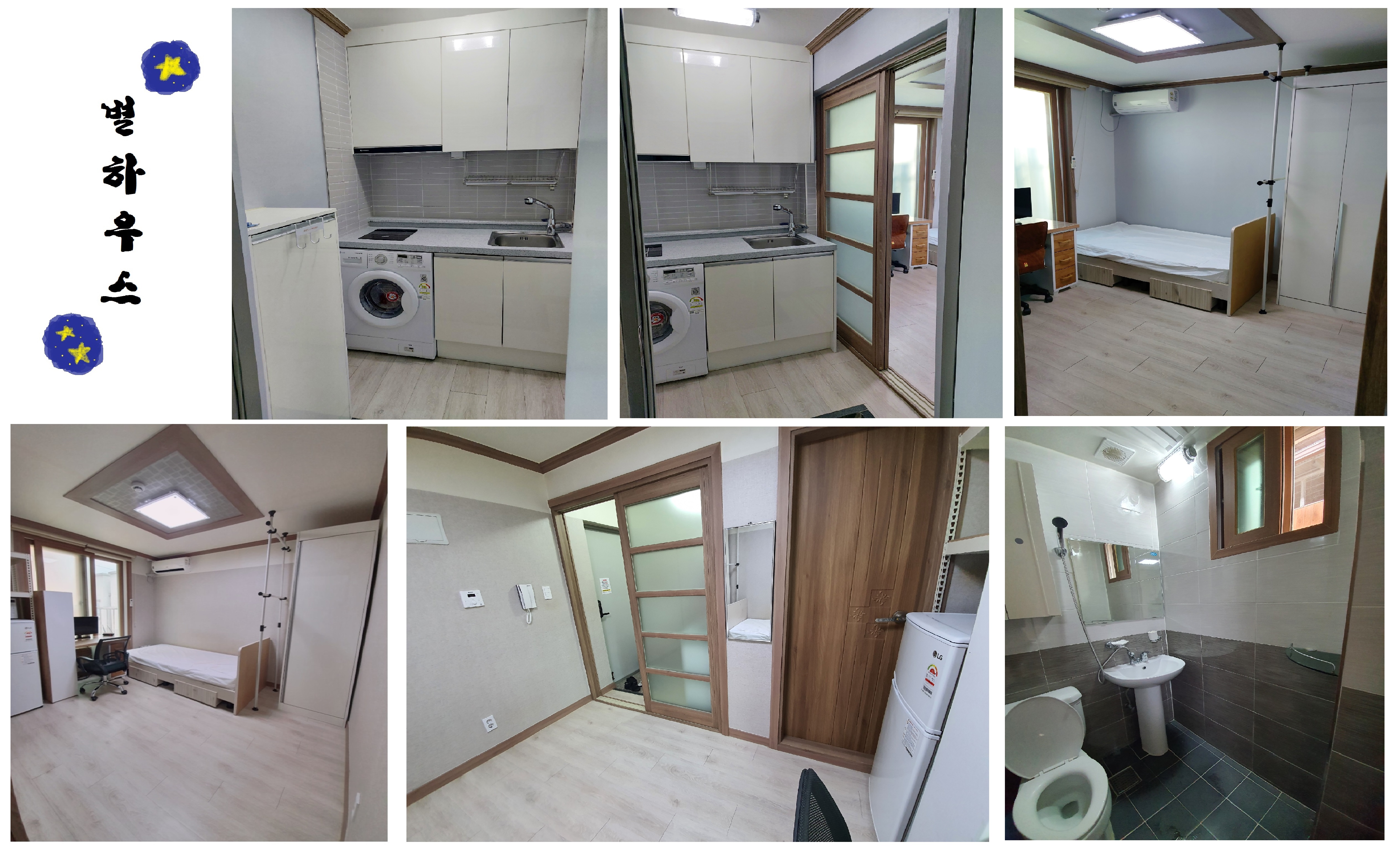 1 : 풀옵션 - 각 방마다 초고속인터넷, LED등, 티비, 에어컨, 냉장고,전자렌지, 드럼세탁기, 침대, 옷장, 책상, 의자,거울,행거,건조대등 완비,의류건조기3대 빨래건조까지.
