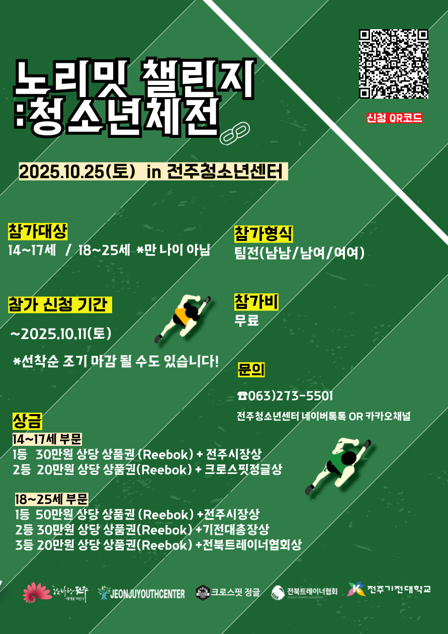 전주청소년센터에서 노리밋챌린지 청소년체전 참가자를 모집합니다. 관심있는 학생들은 많은 참여 바랍니다.
