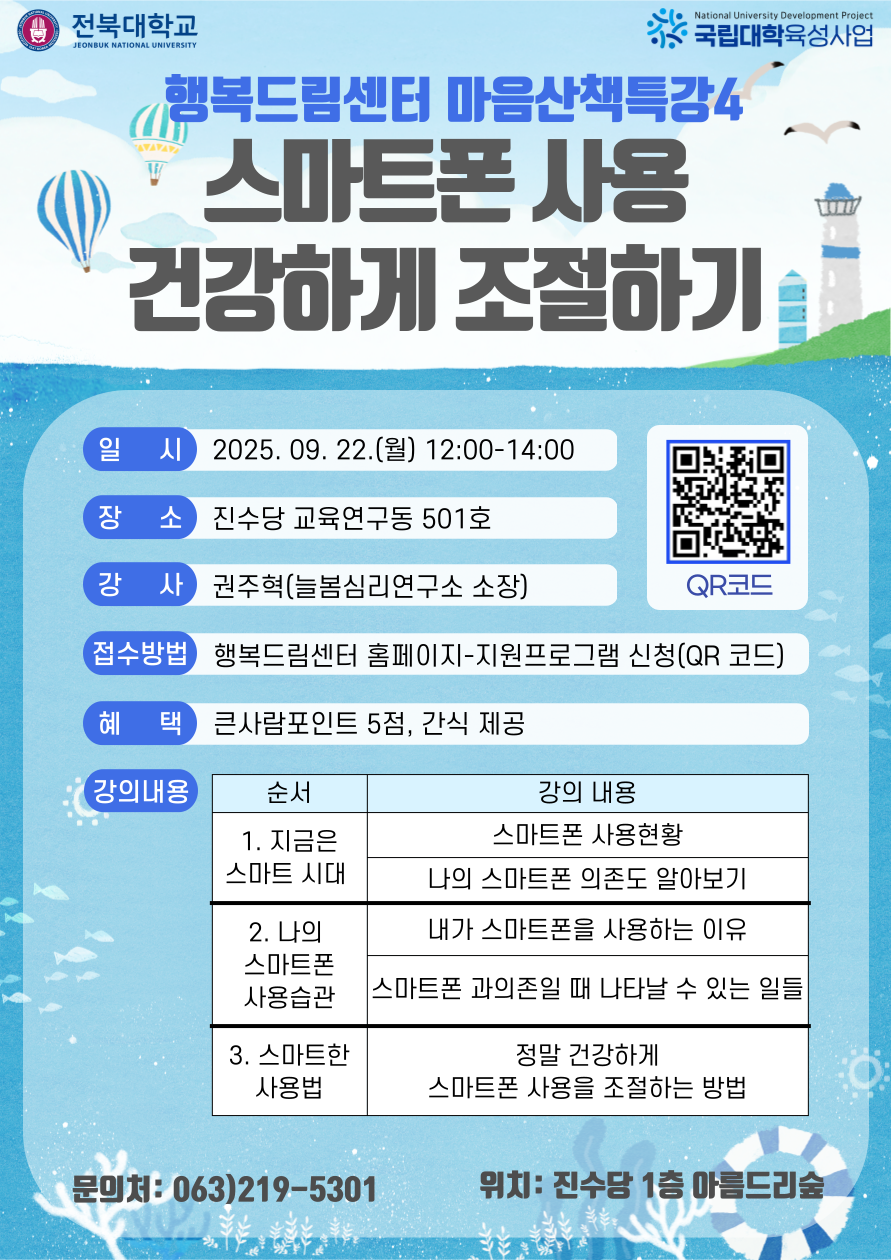 (재공지) [행복드림] 마음산책특강4 - "스마트폰 사용 건강하게 조절하기" 프로그램 안내