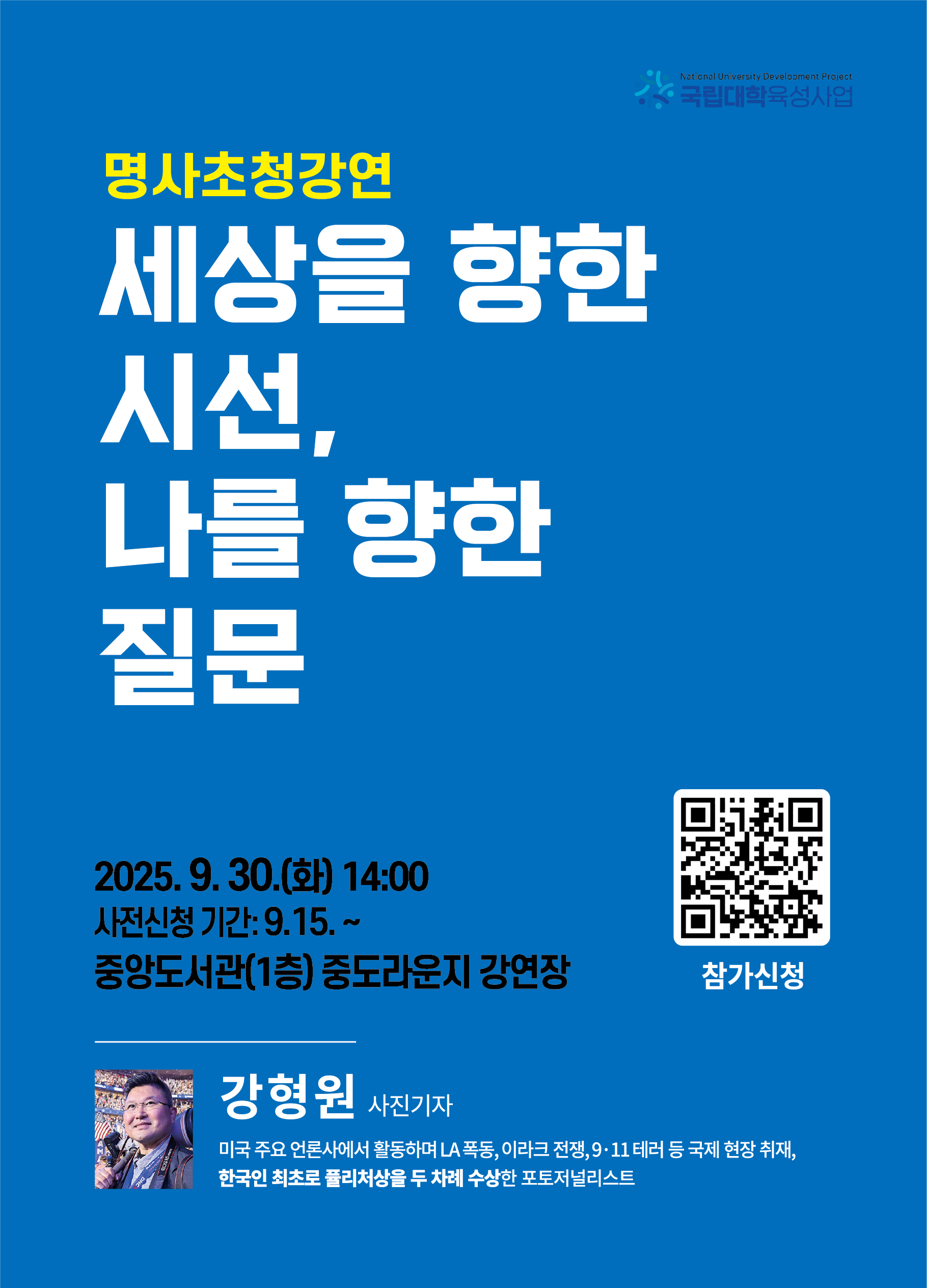 강연대상: 지역민 및 대학구성원 150명 (사전신청 100명 / 현장신청 50명)