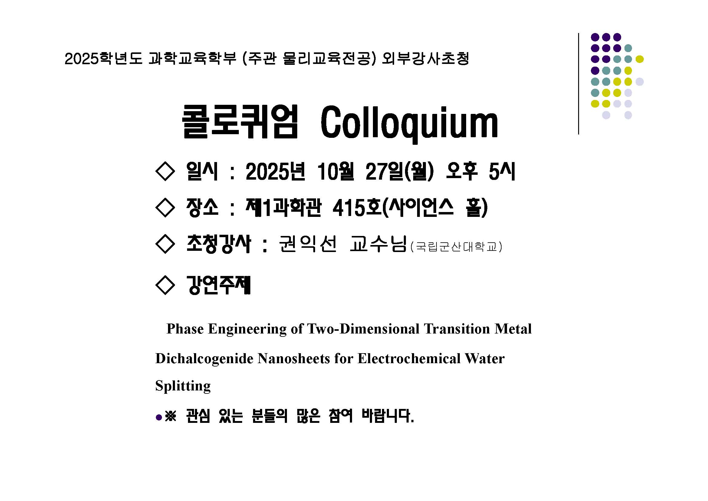 2025학년도 과학교육학부 (주관 물리교육전공) 외부강사초청