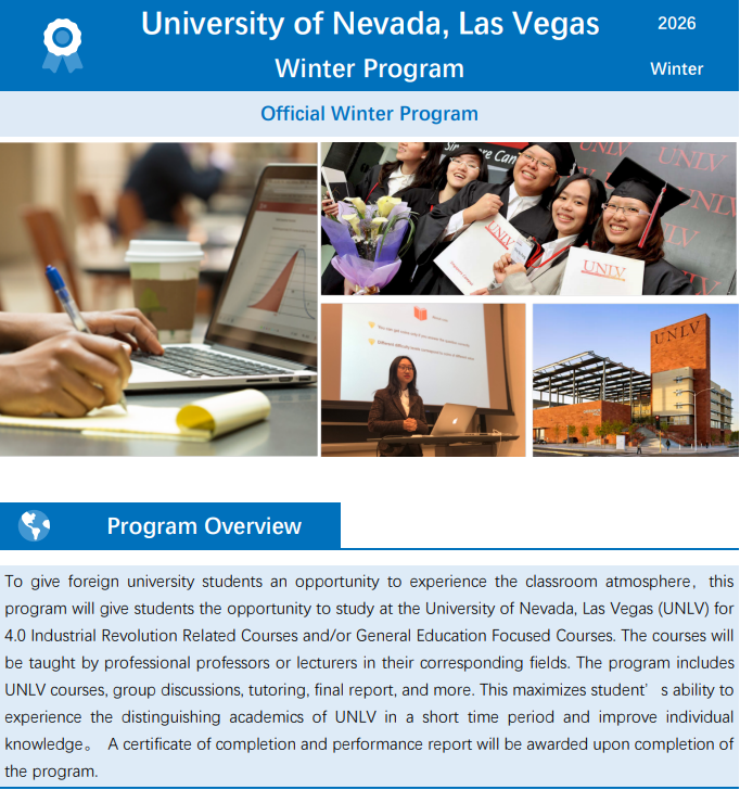 미국 네바다 라스베가스 대학교에서 단기 및 장기 프로그램을 진행하오니 많은 관심 부탁드립니다.
