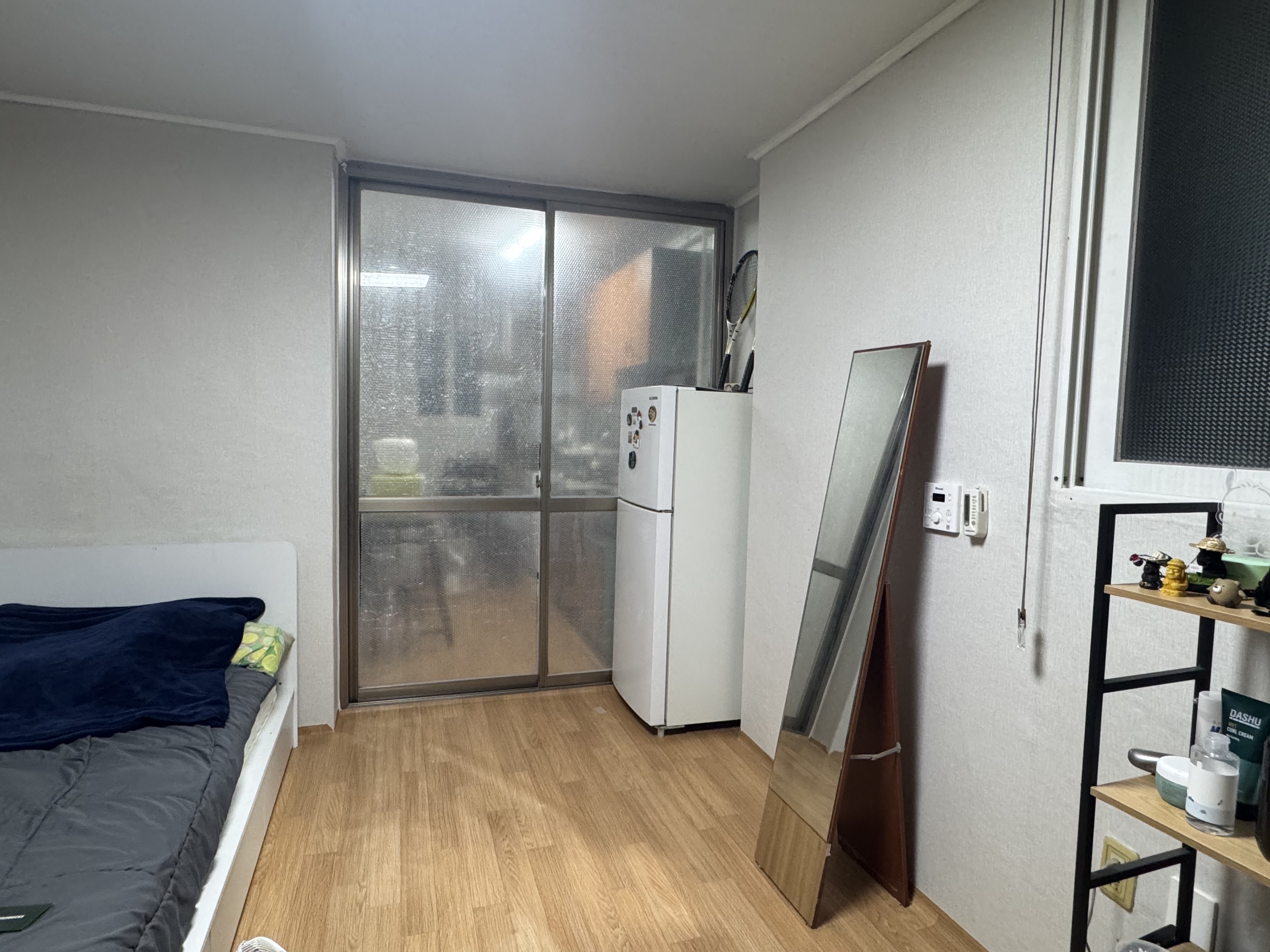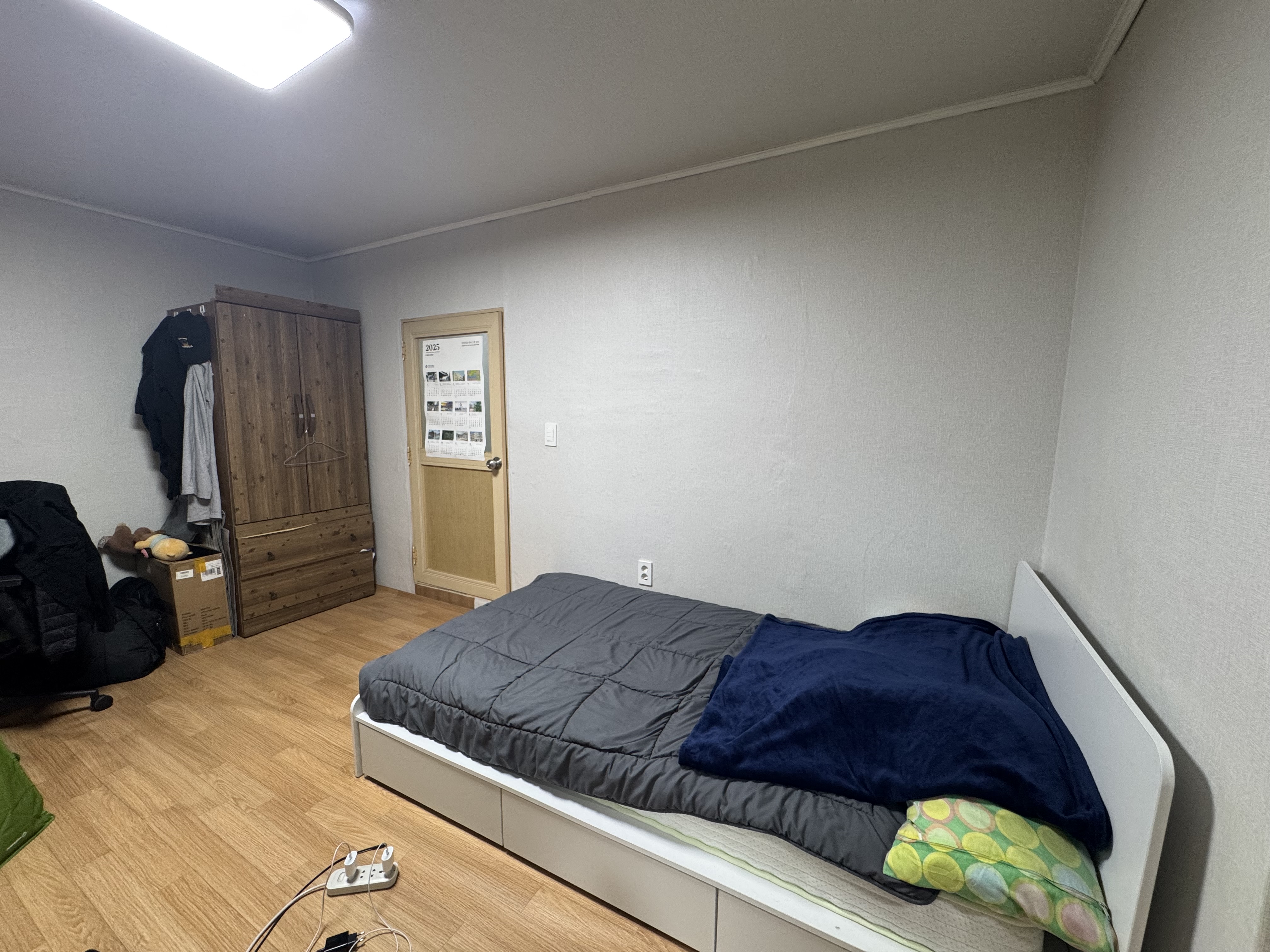 The room is located near Jeonbuk National University’s new main gate — with cafes, convenience stores, a mart, and a bus stop nearby, making it very convenient.