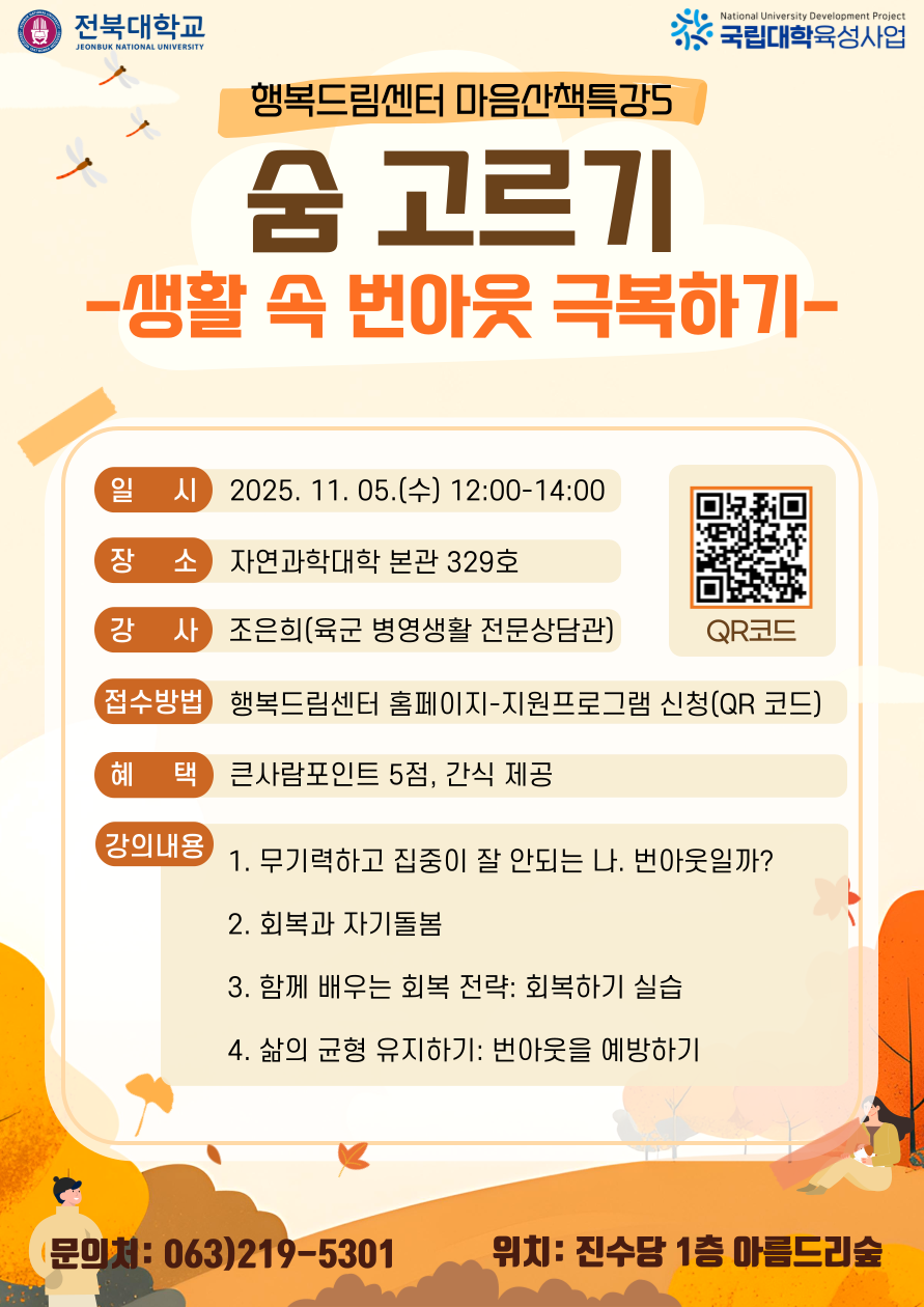 [행복드림] 마음산책특강5 - "생활 속 번아웃 극복하기" 프로그램 안내