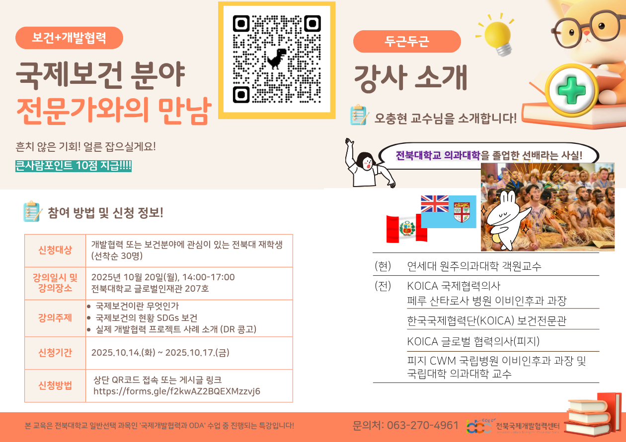 2025년 10월 20일(월) '국제보건 분야 전문가와의 만남(특강)' 참여자를 모집합니다.