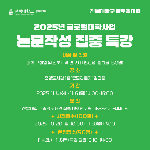 문의전화: 중앙도서관 학술연구지원팀 063-270-4408