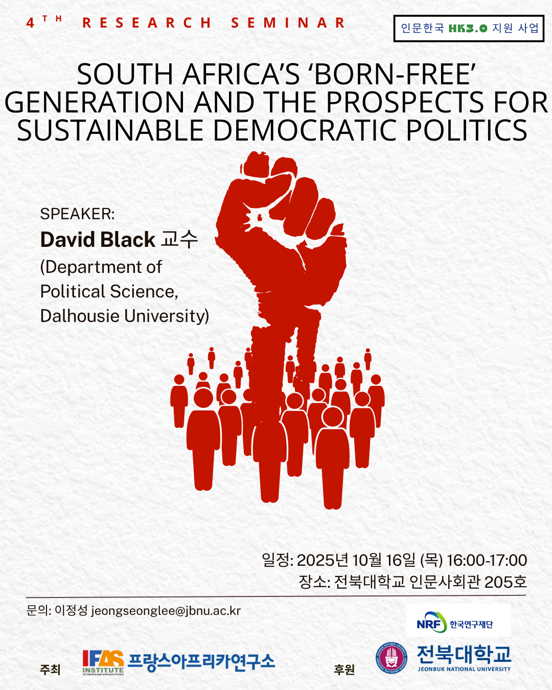 주제: South Africa's 'Born-Free' generation and the prospects for sustainable democratic politics
