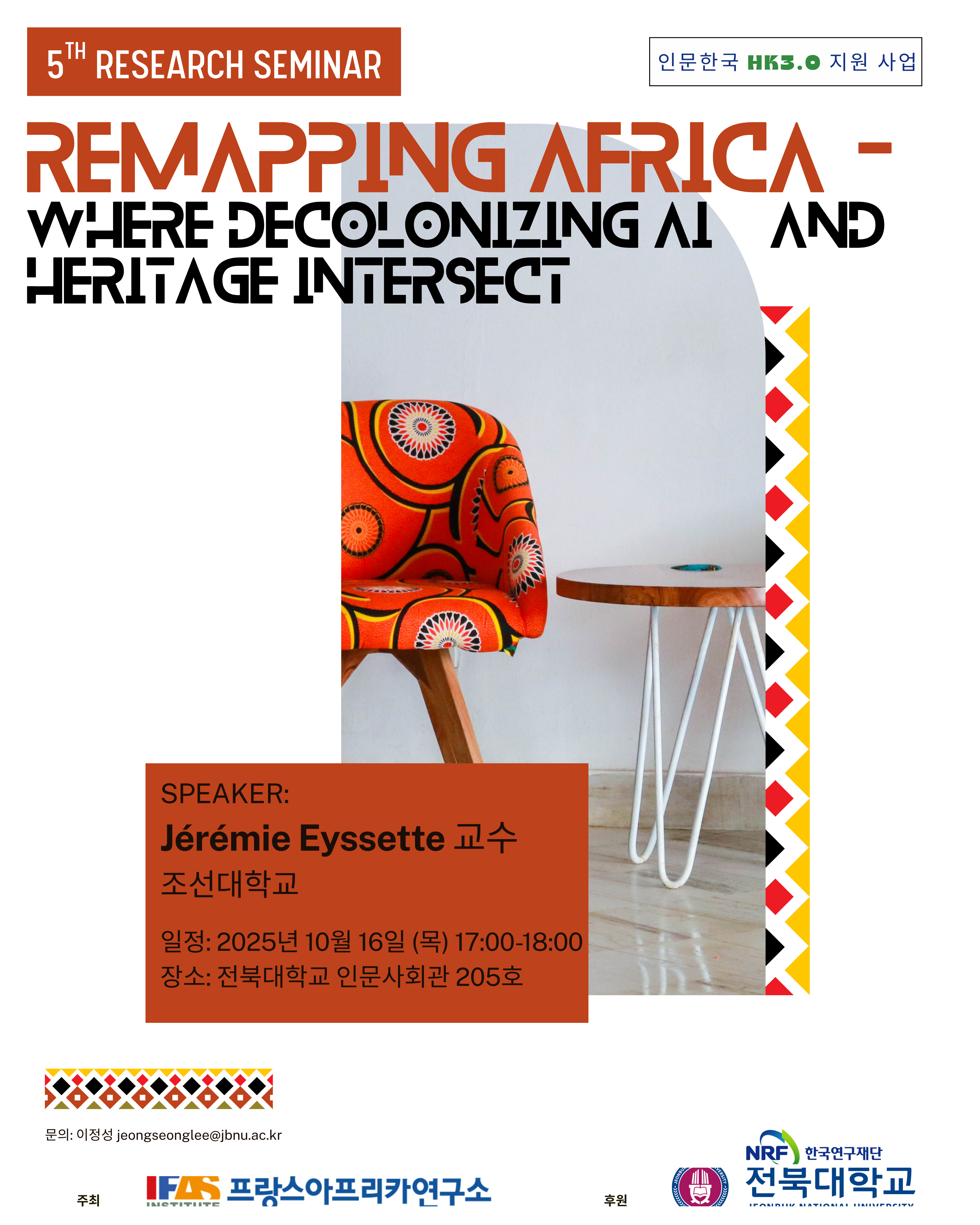 저희 프랑스·아프리카연구소(IFAS)는 해외 전문가를 초청하여 제 5회 연구전문가 세미나 시리즈를 개최합니다.