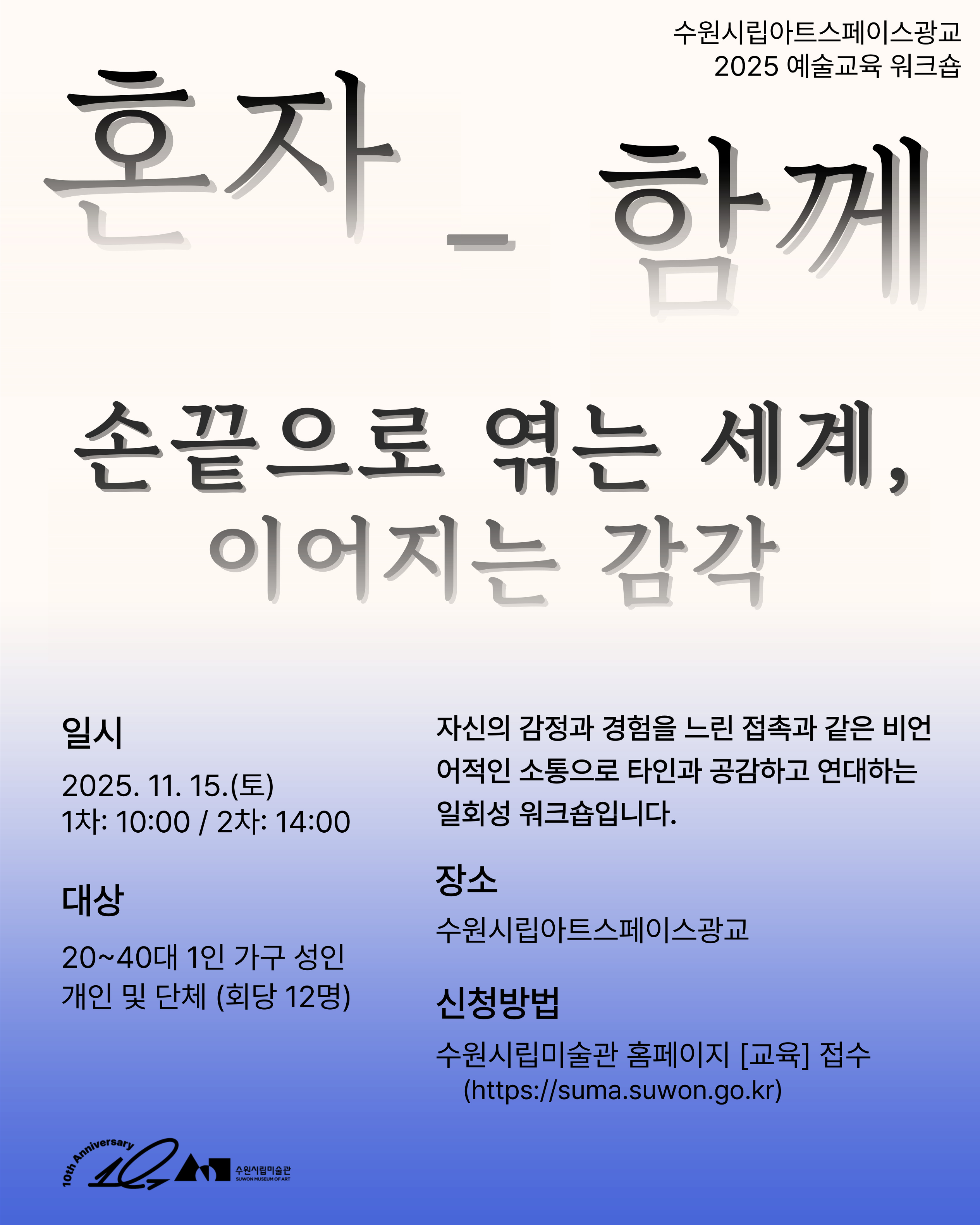 (수원시립미술관) 수원시립아트스페이스광교 예술교육워크숍 (1인가구 성인 대상) 참여자 모집 안내