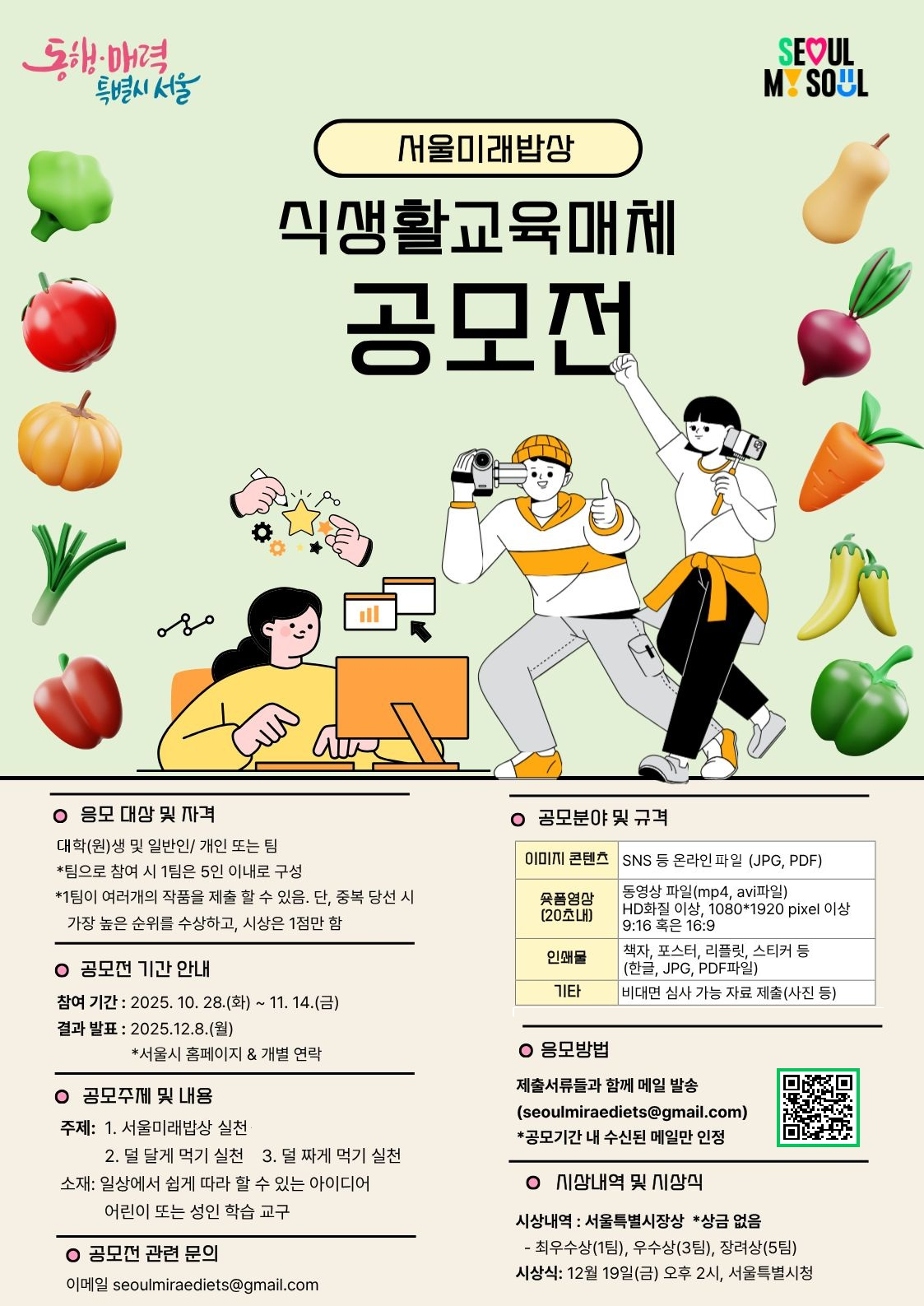 서울특별시에서 서울미래밥상 식생활교육매체 공모전을 개최합니다. 관심있는 학생들은 많은 참여 바랍니다.