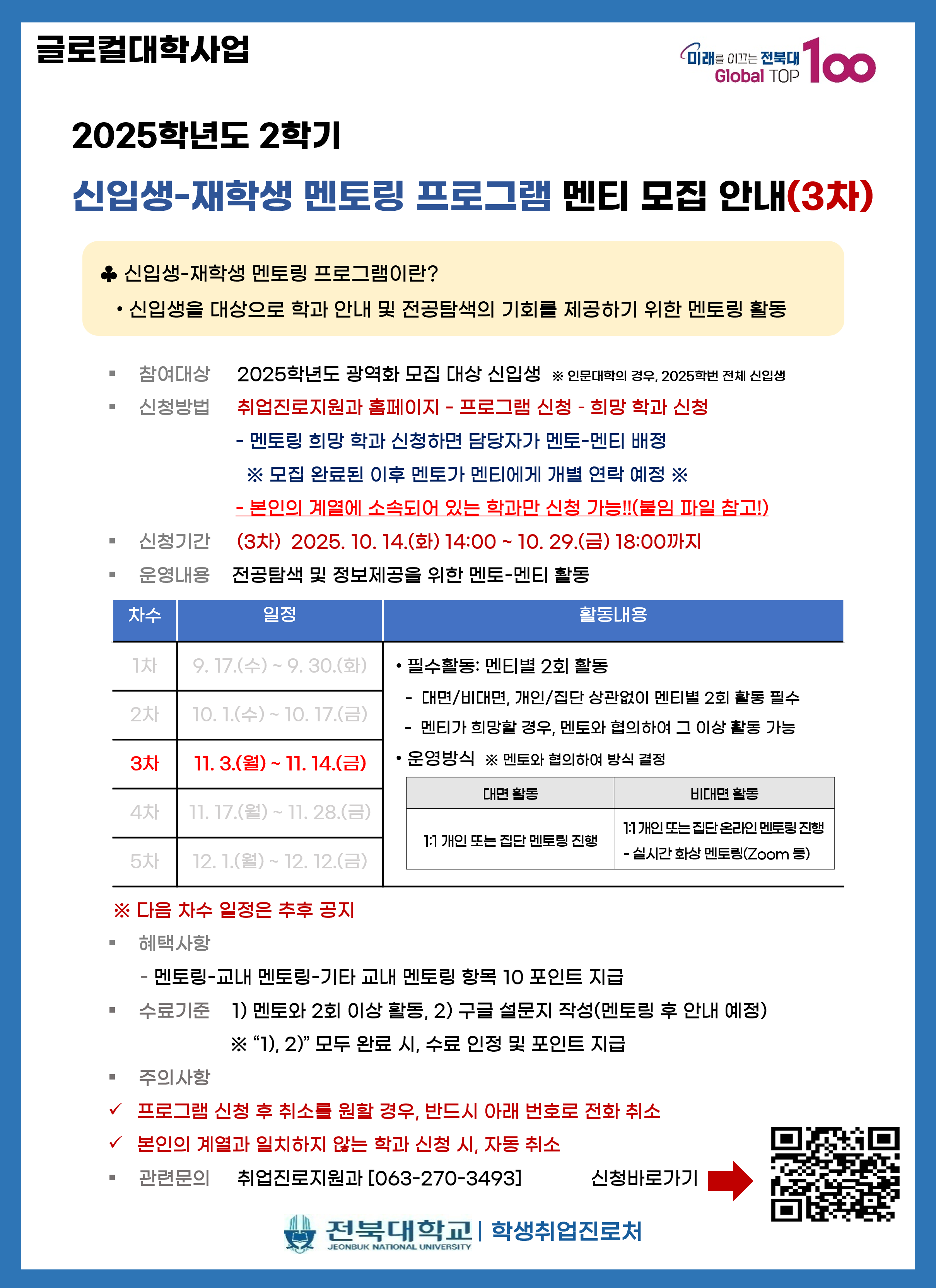 (3차 마감전) 신입생-재학생 멘토링 프로그램 멘티 모집(3차)