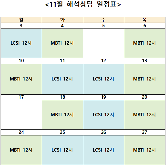 11월 심리검사(인성검사) 신청 안내