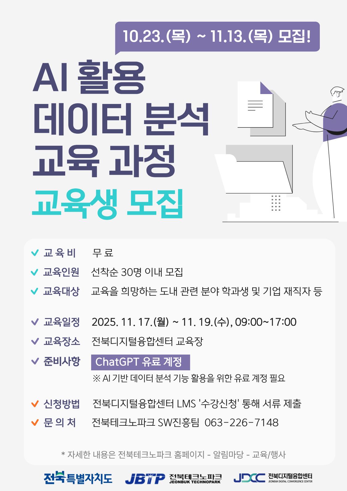 ○ 교육일정 : 2025. 11. 17.(월) ~ 11. 19.(수) (총3일), 09:00~17:00