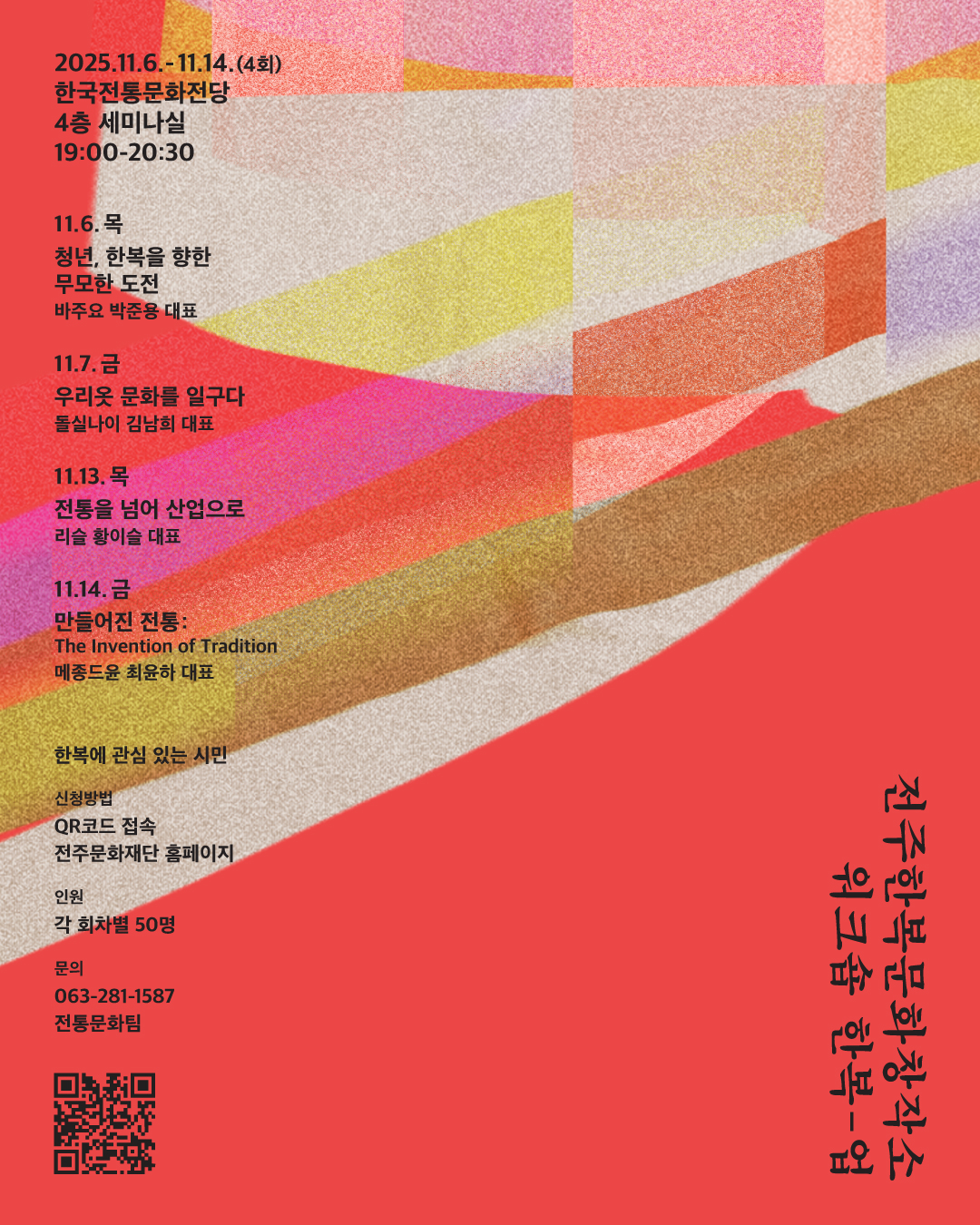 2. (재)전주문화재단에서 한복분야의 전통과 현대를 아우르는 가치창출 및 시민들과의 네트워크 형성을 위해 「한복 up」워크숍을 운영합니다.