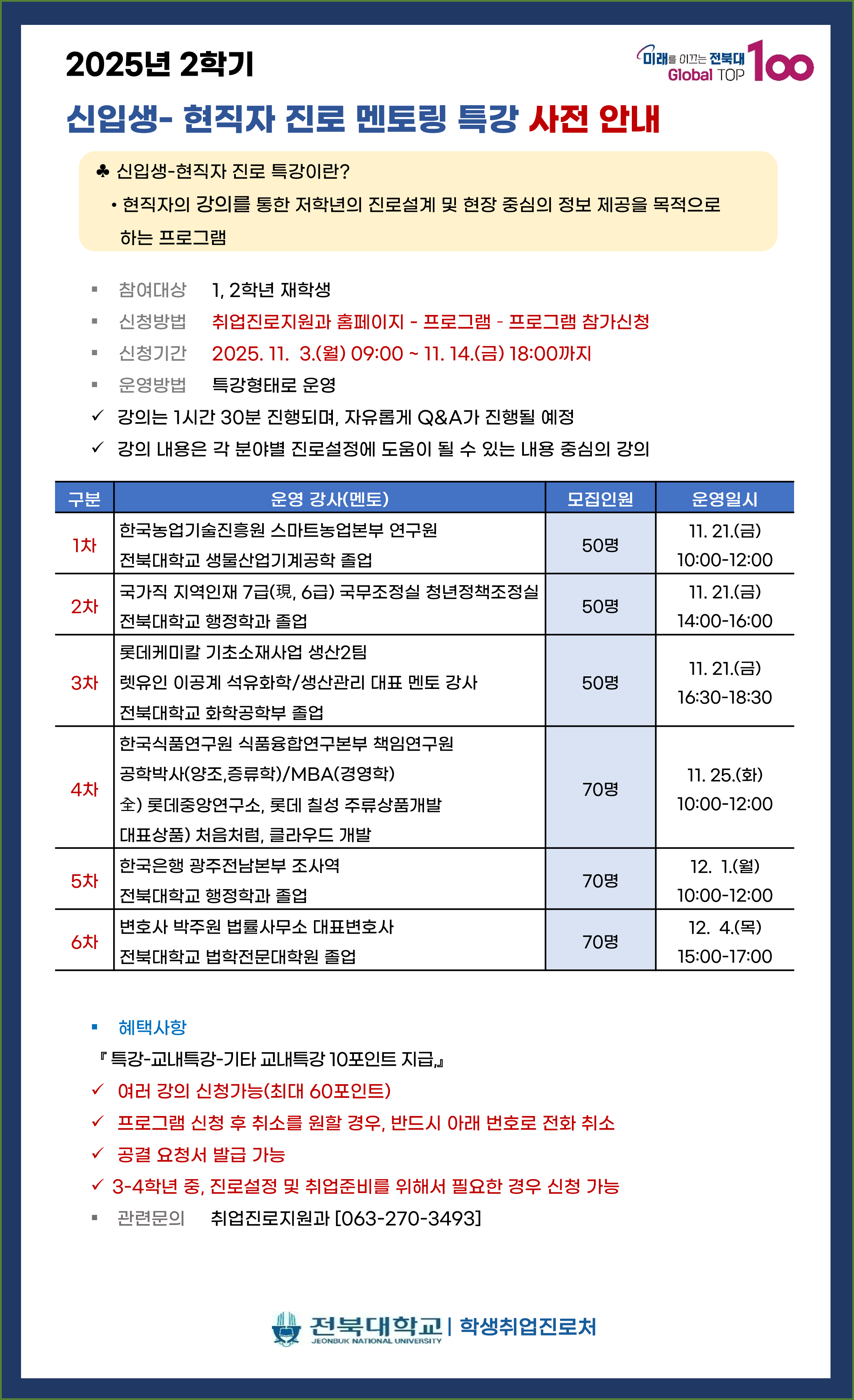 [YELLOW BELT필수선택] 신입생-현직자 진로 멘토링 특강 사전안내
