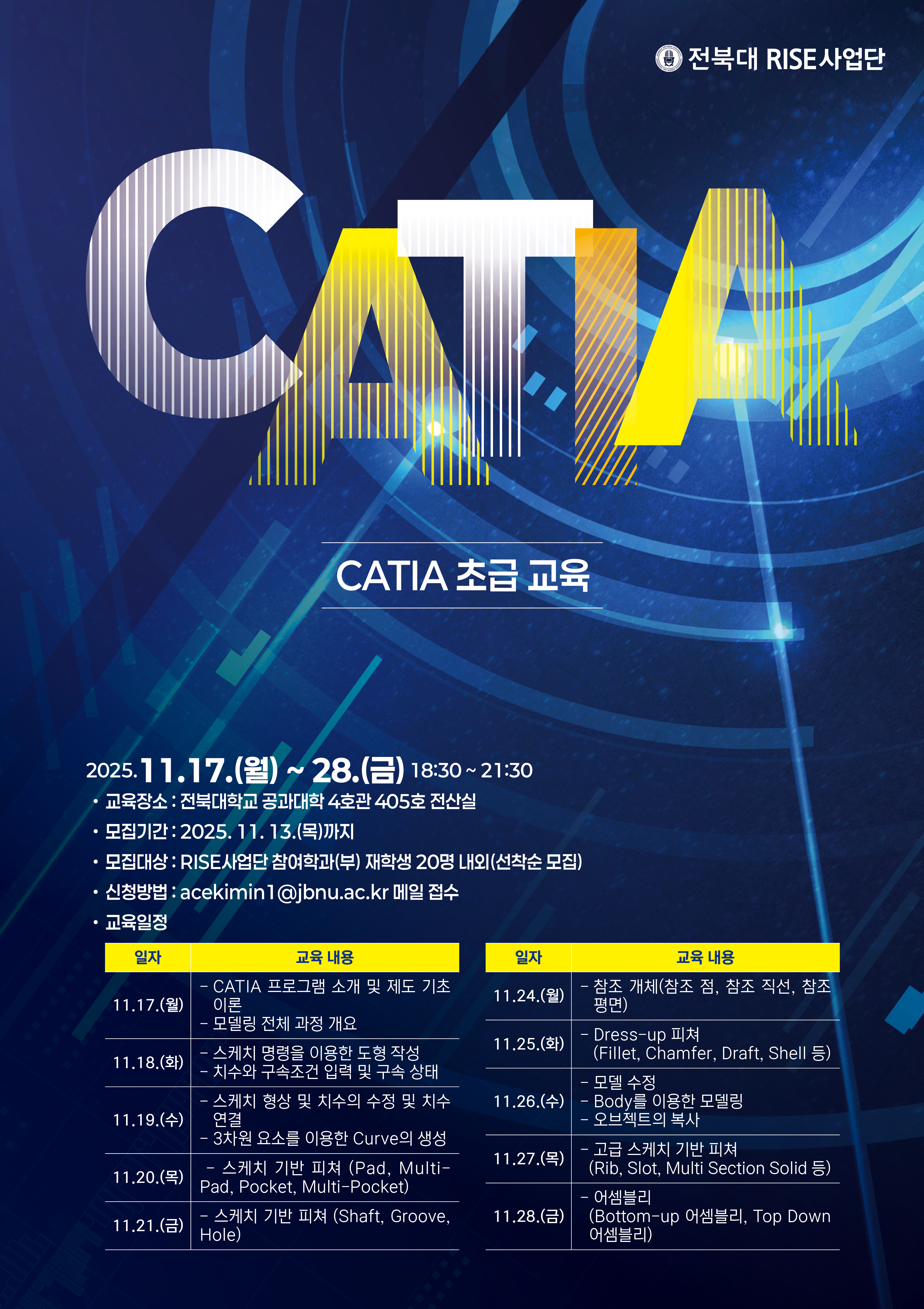 * 메일 제목에 'CATIA 초급 교육 신청' 포함하여 메일 제출