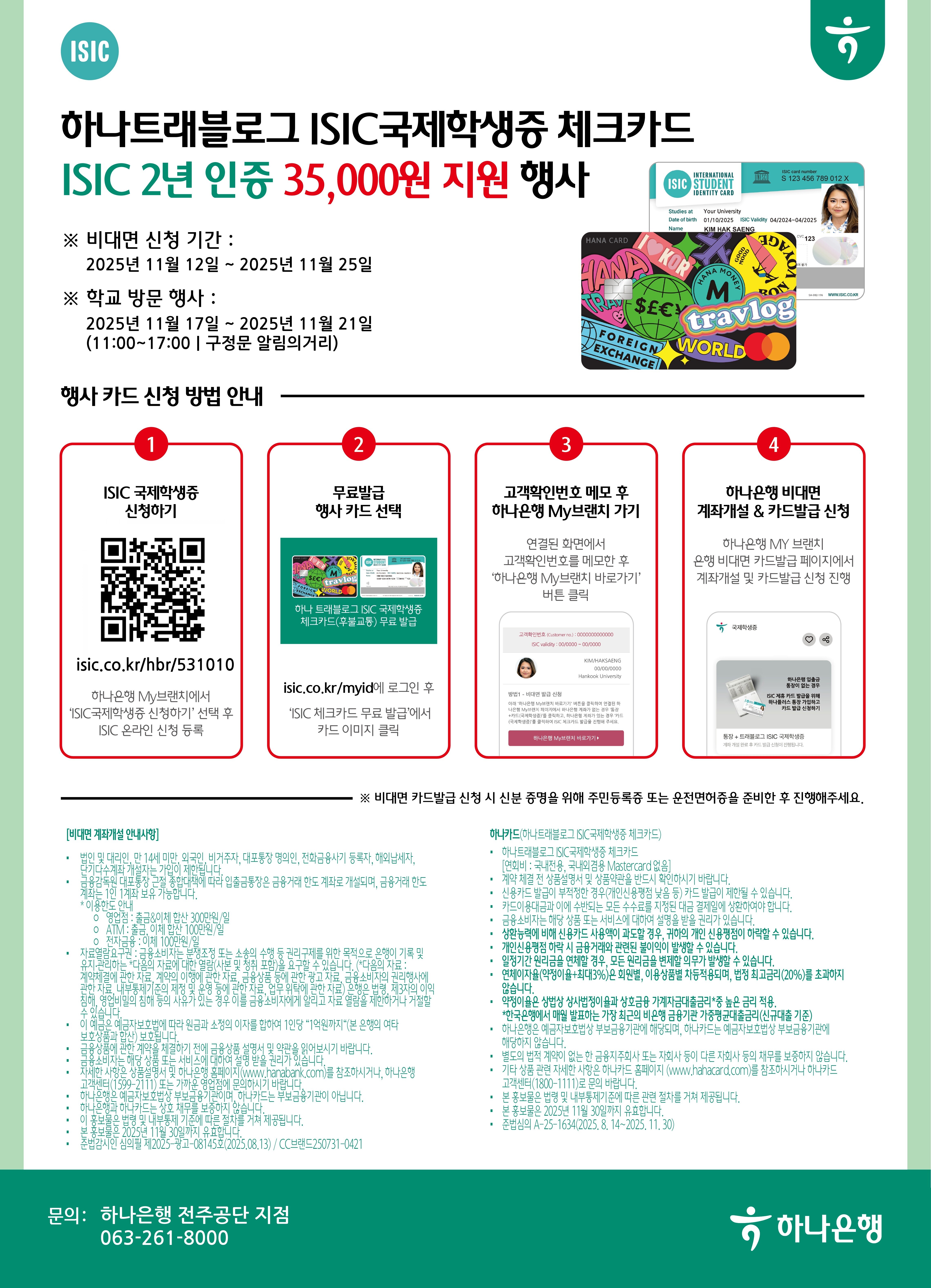 5. 발급 비용: 무료(국제학생증 발급비 35,000원 하나은행 부담)