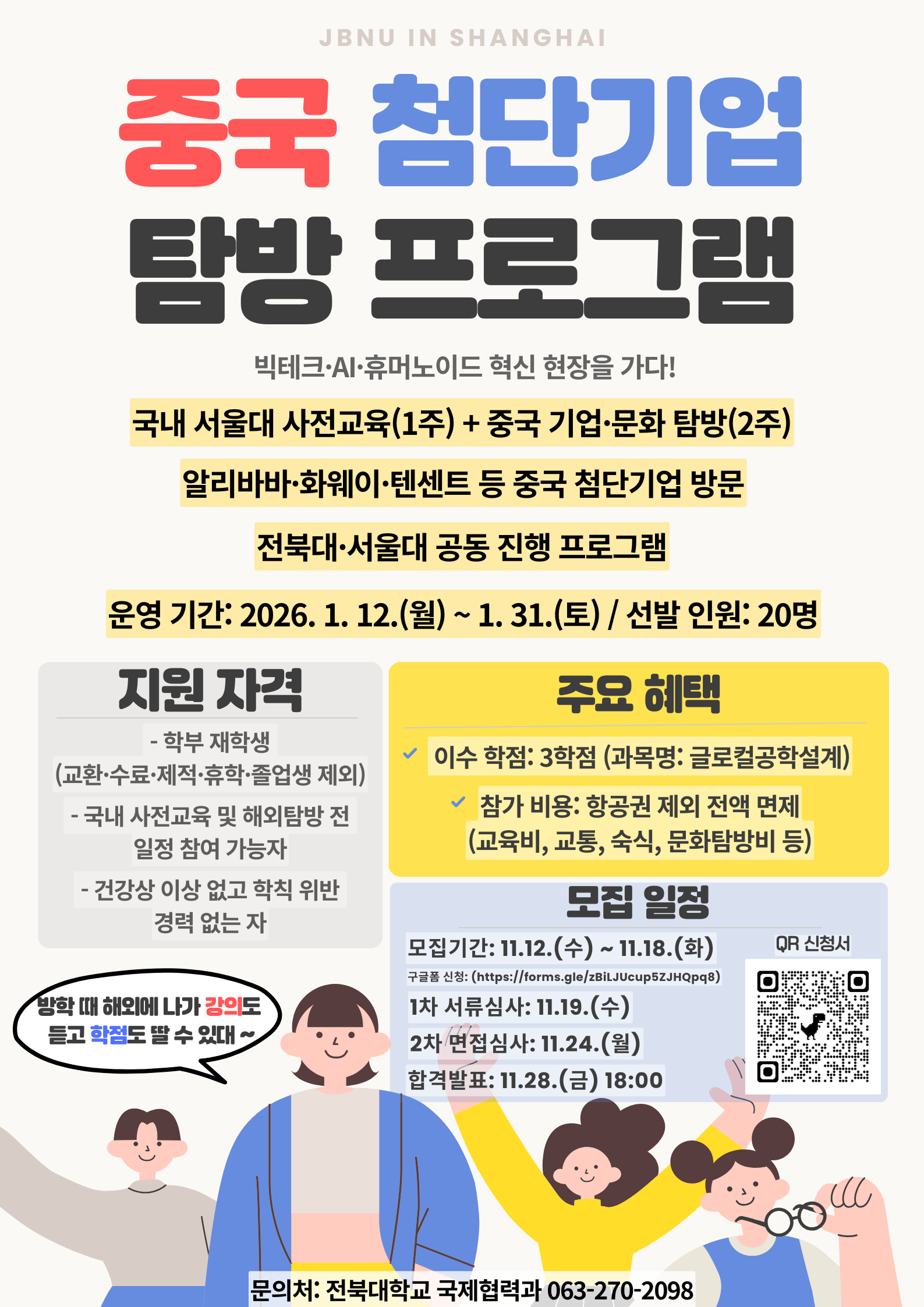 문의: 국제협력과 ☎ 063-270-2098 / ✉️ cjfrnjsgkrry@jbnu.ac.kr