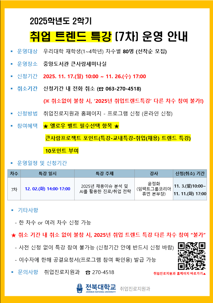 [YELLOW BELT 필수선택]2학기 취업 트렌드 특강 참여자 모집(7차)