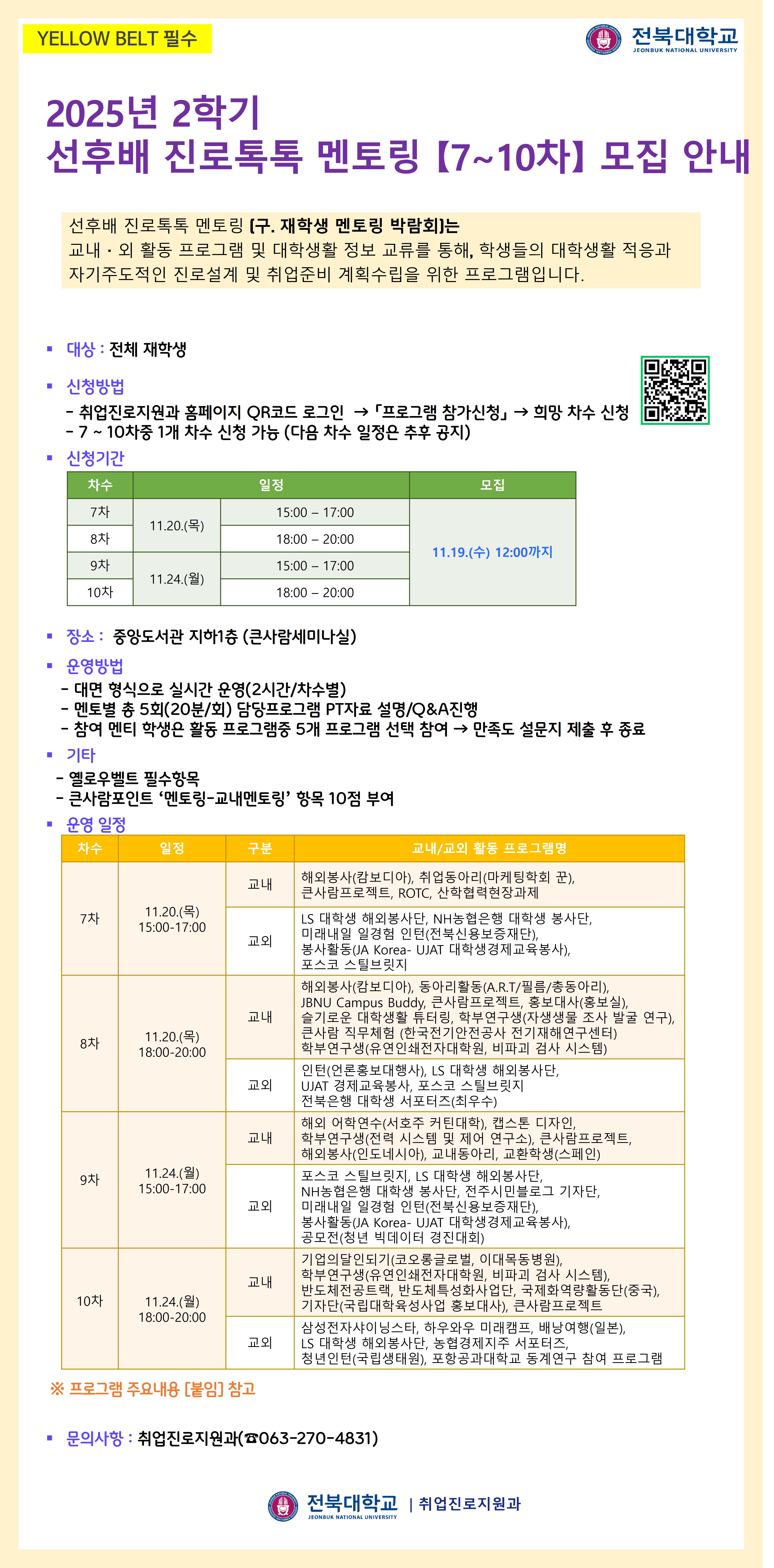 [YELLOW BELT 필수] 재학생-재학생 멘토링 박람회 : 선후배 진로톡톡 멘토링(7~10차)【멘티】차수별 모집 안내
