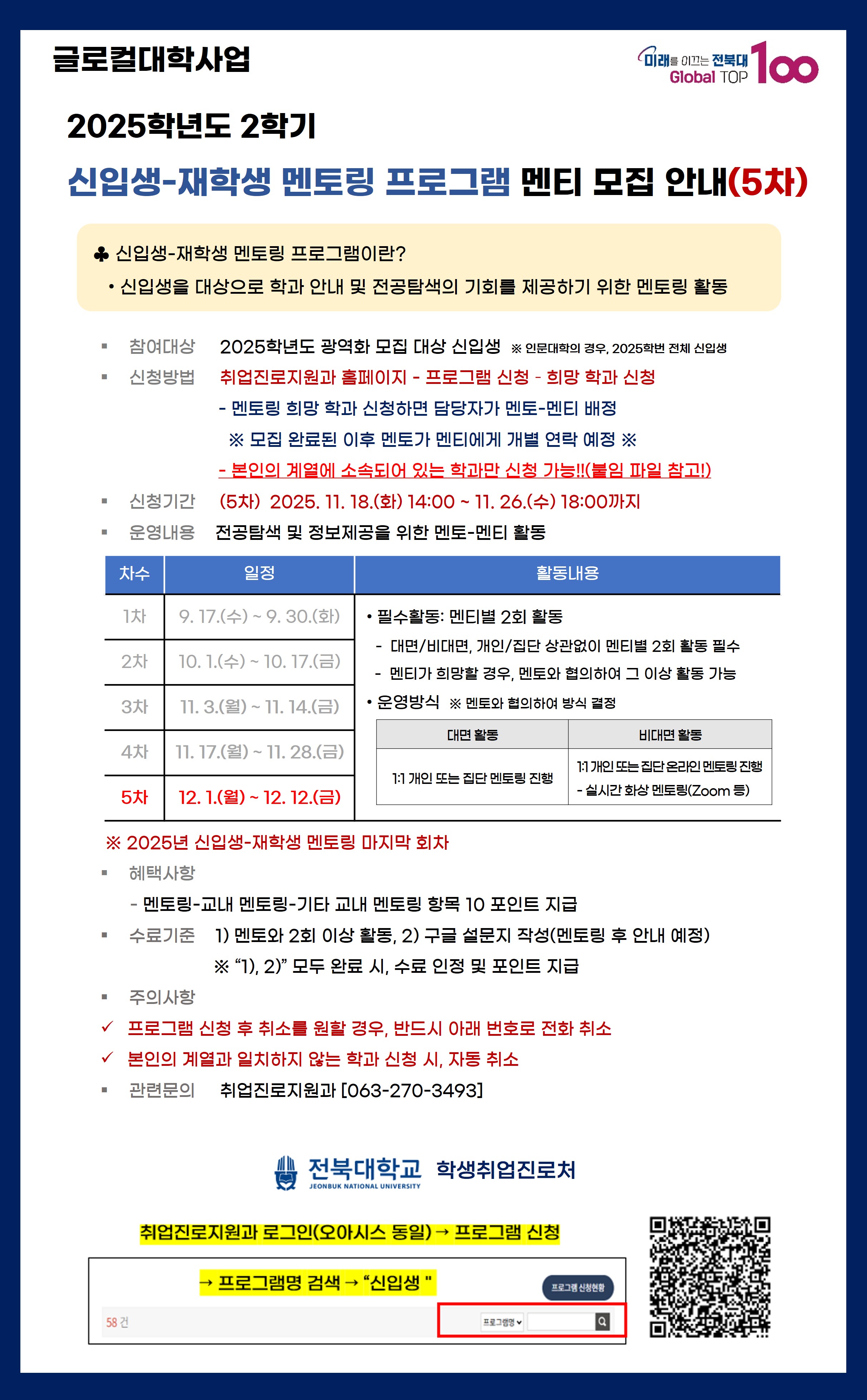 본 프로그램은 2025학년도 광역화 모집 대상 신입생에게 전공 탐색 기회를 제공하기 위해 개설된 멘토링 프로그램입니다.